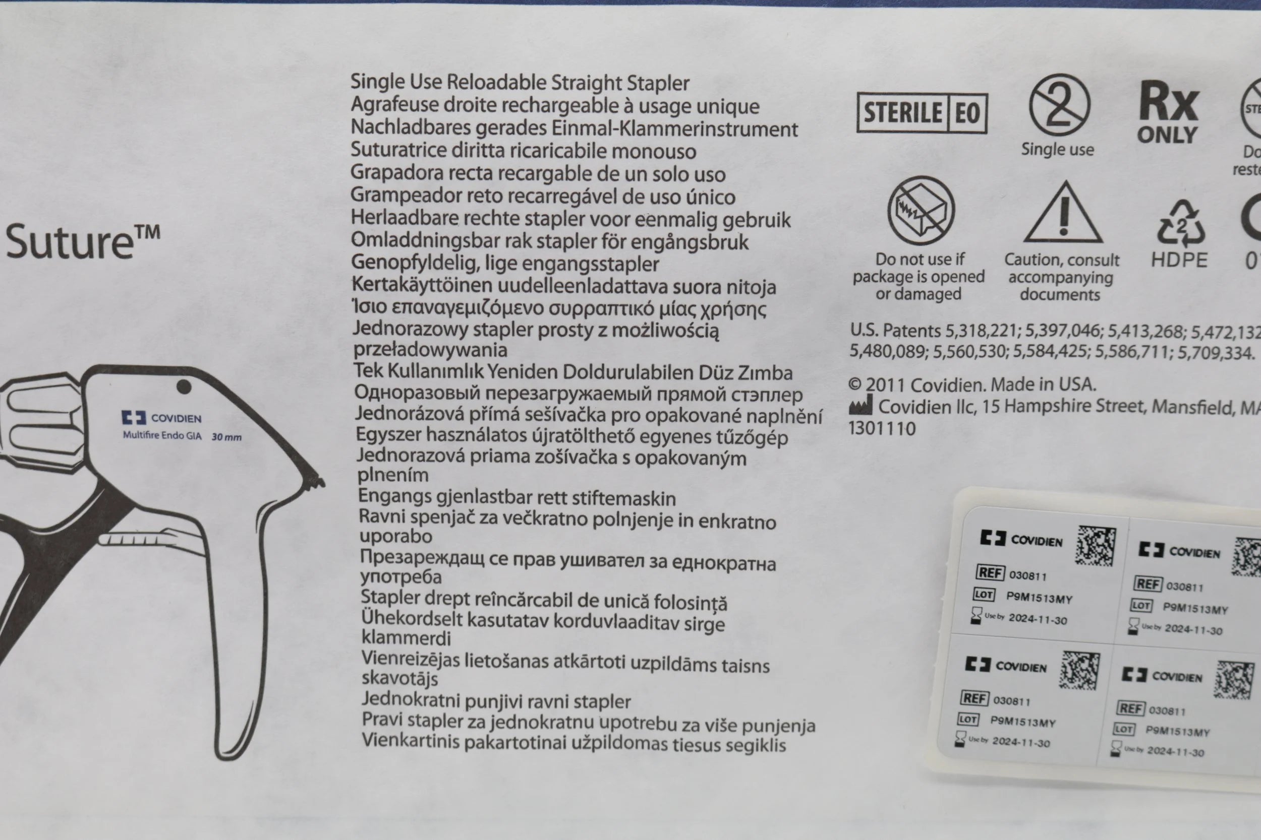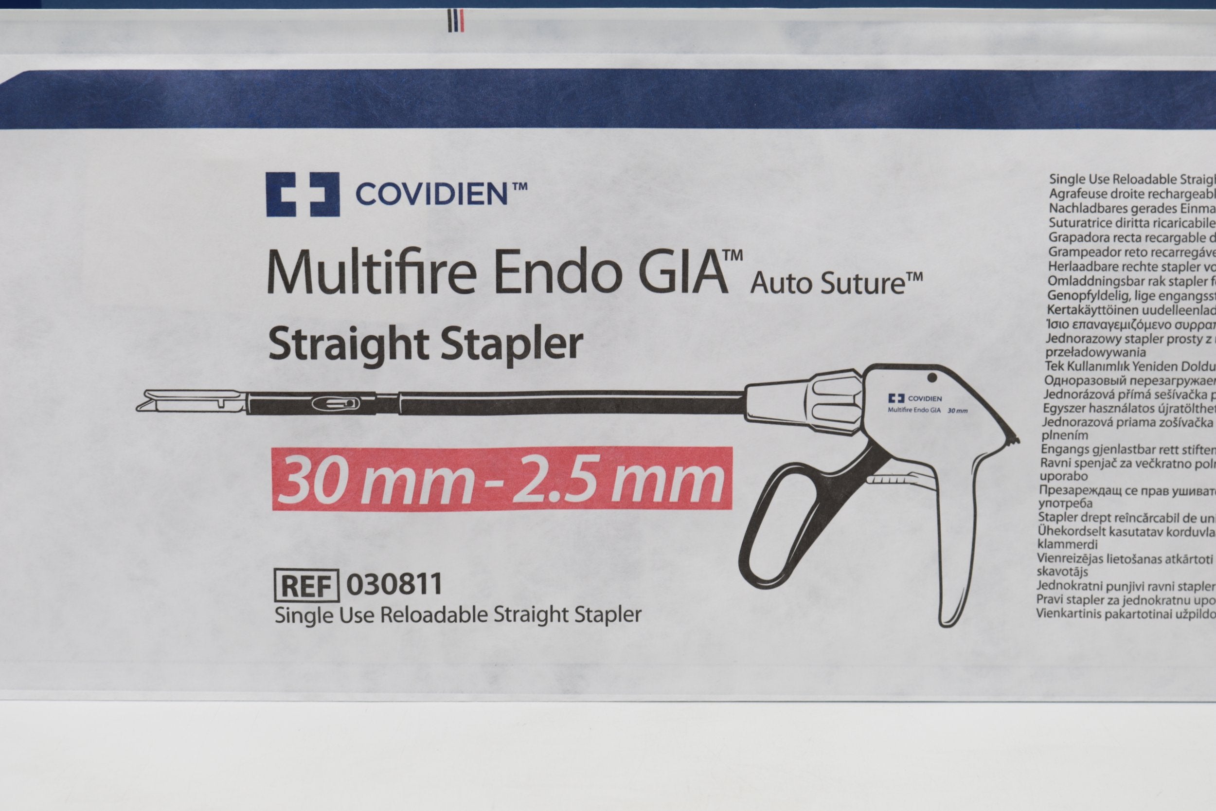Covidien | 030811 | EXPIRED | EACHES | Multifire Endo GIA Auto Suture Single Use Reloadable Straight Stapler 30mm-2.5mm