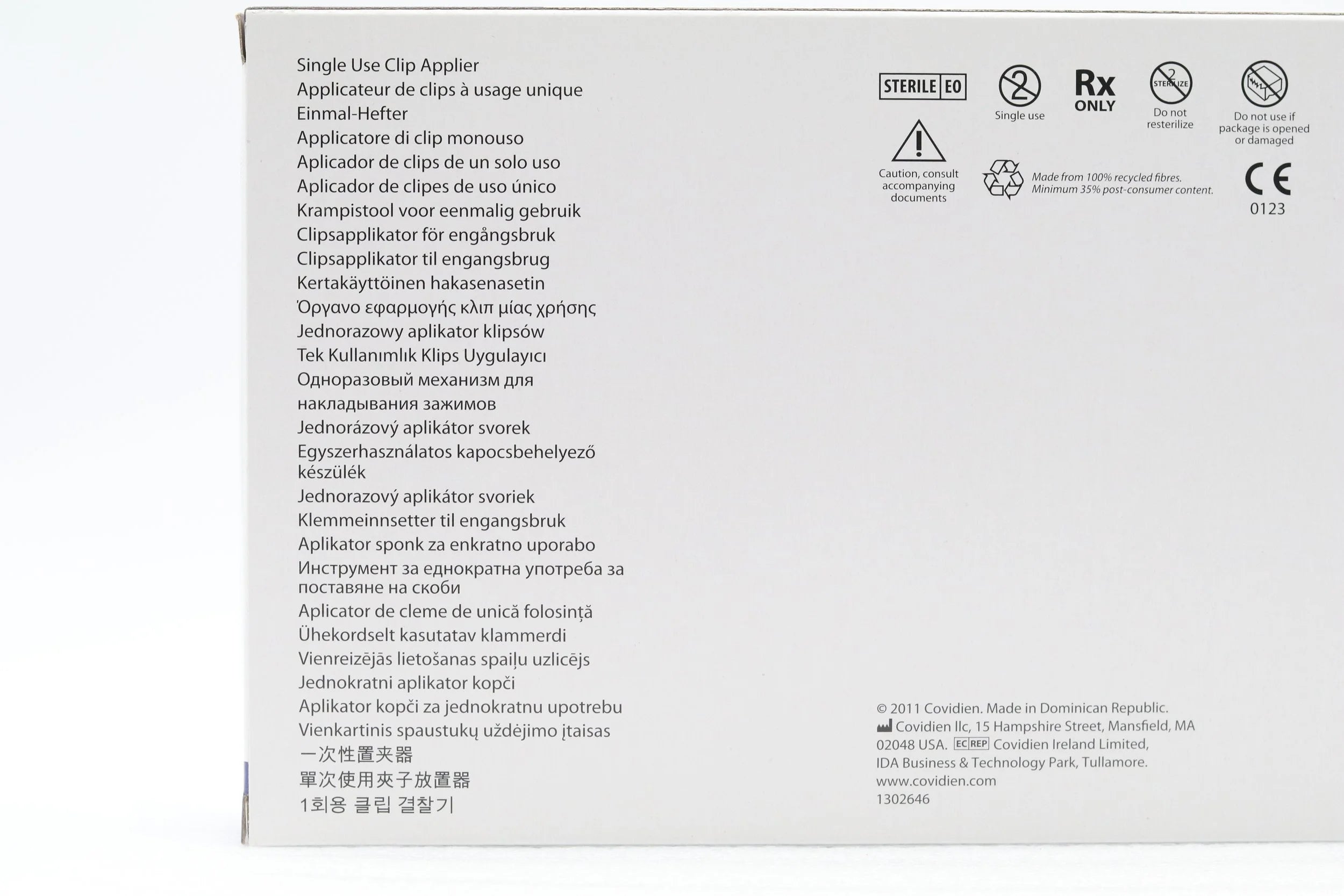 Covidien 176625 Endo Clip Auto Suture Single Use Clip Applier 10mm Large