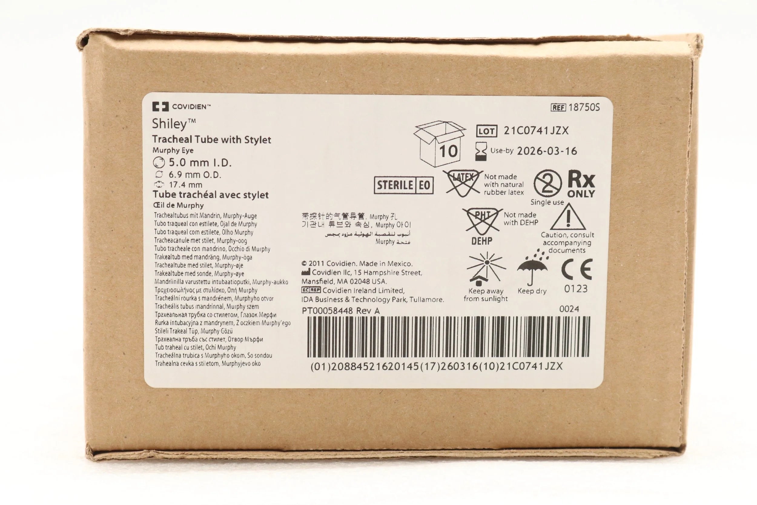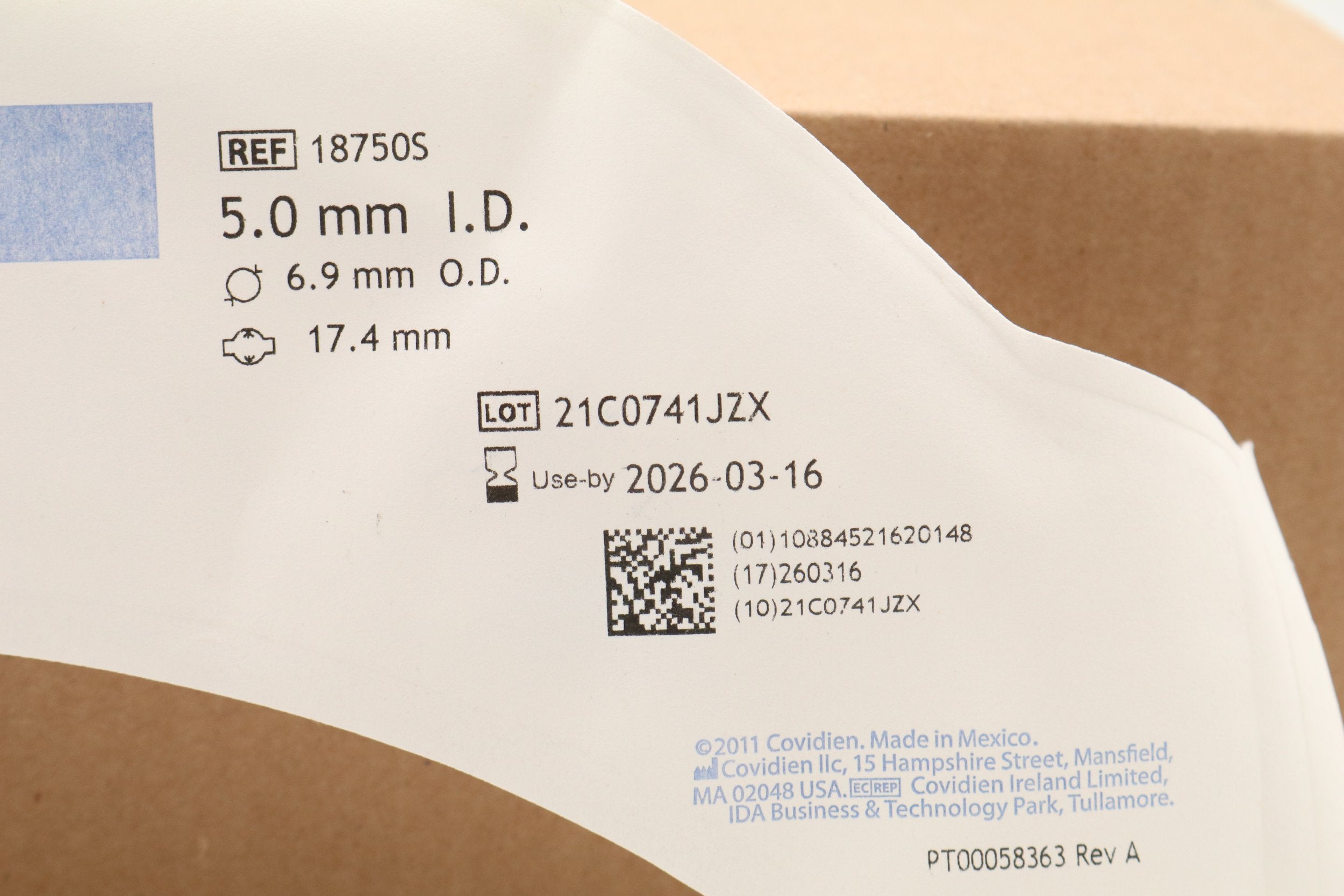 COVIDIEN | 18750S | IN-DATE | EACHES | TaperGuard Tracheal Tube with Stylet, Murphy Eye, 5.0mm ID x 6.9mm OD