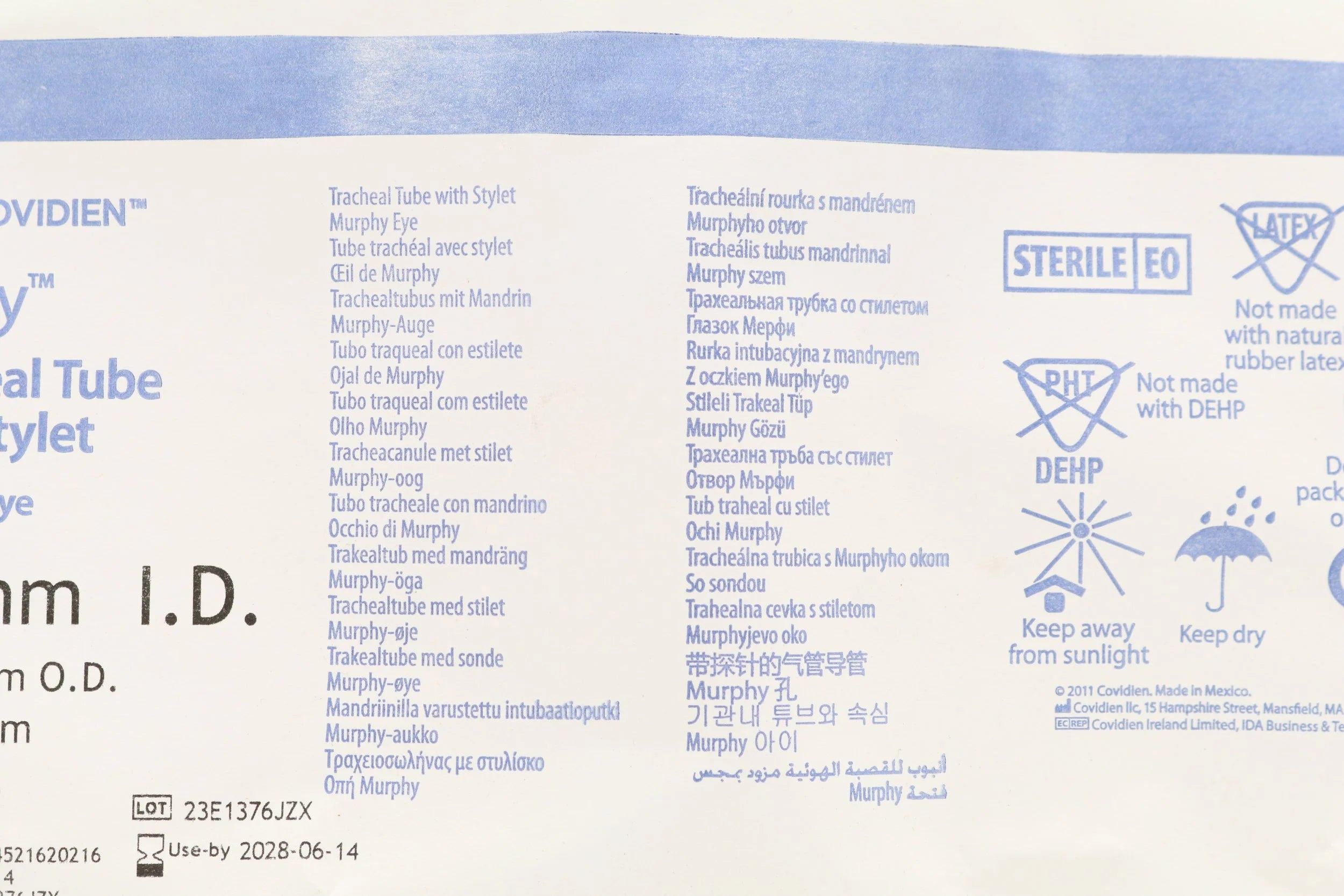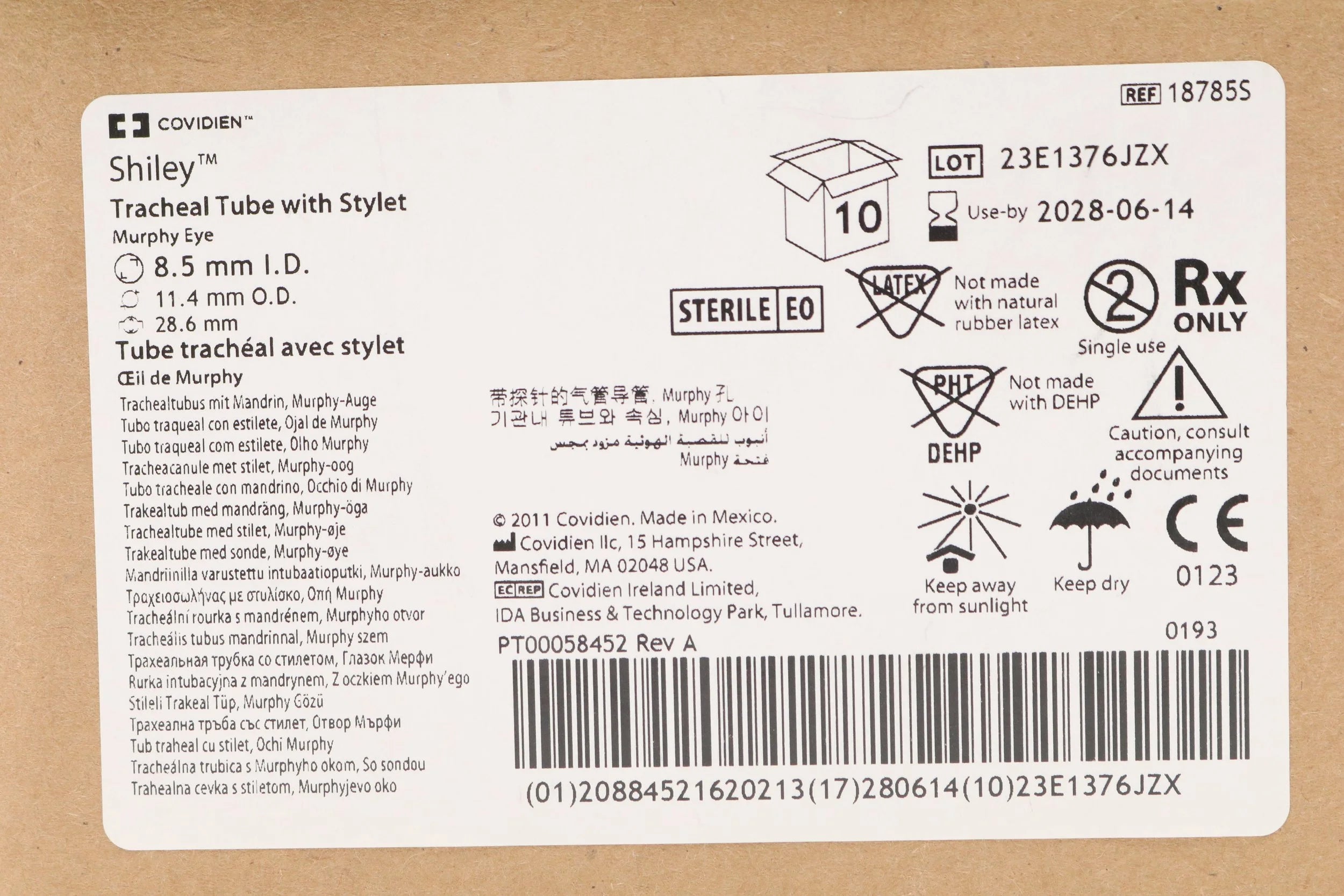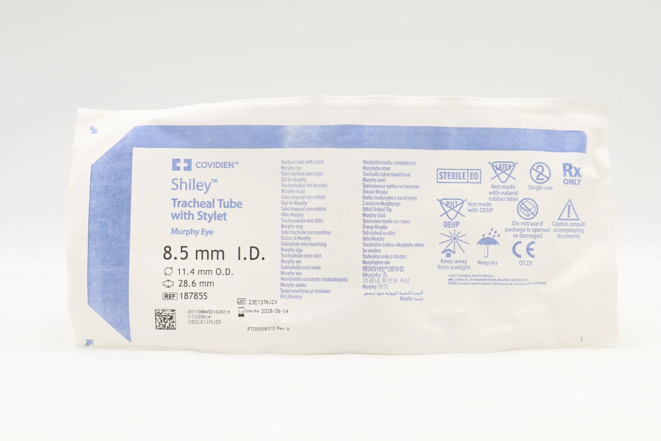 Covidien | 18785S | IN-DATE | BOX OF 10 | Taperguard Tracheal Tube With Stylet, Murphy Eye, 8.5mm Id X 11.4mm Od
