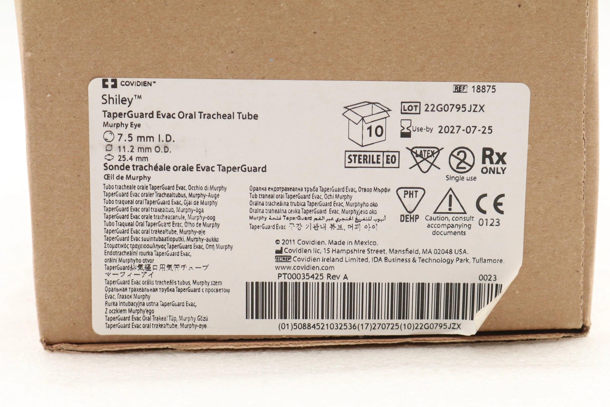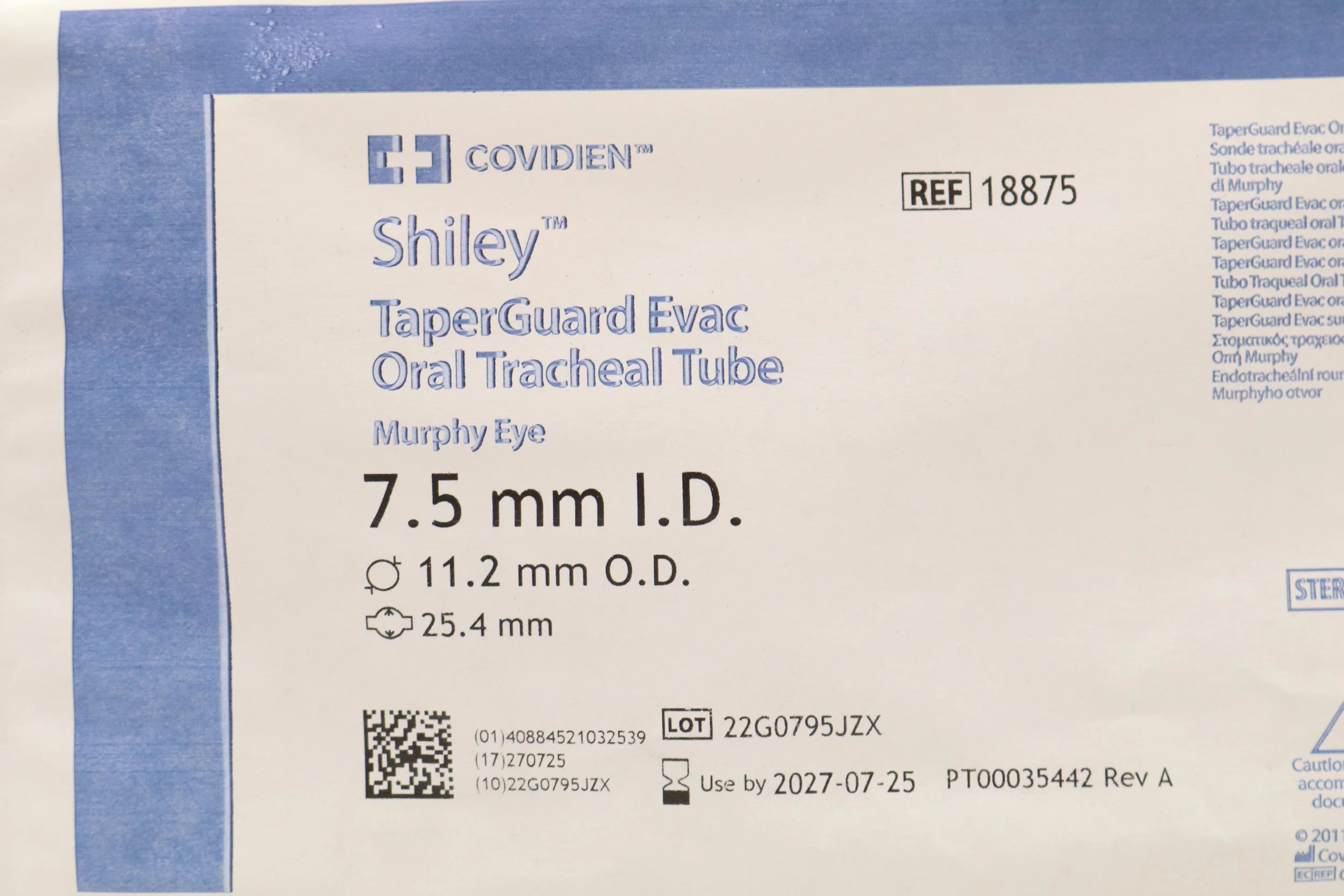 Covidien | 18875 | IN-DATE | BOX OF 10 | TUBE, ENDOTRACHEAL, TAPERGUARD, EVAC, 7.5MM