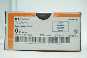 COVIDIEN | 3002-62 | BOX OF 24 | Ti-Cron Coated Braided Polyester 0 3.5 Metric 6x30" 75cm BLUE