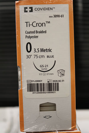 COVIDIEN Ti-Cron Coated Braided Polyester 0 3.5 Metric 30" 75cm BLUE PACK of 36/pc