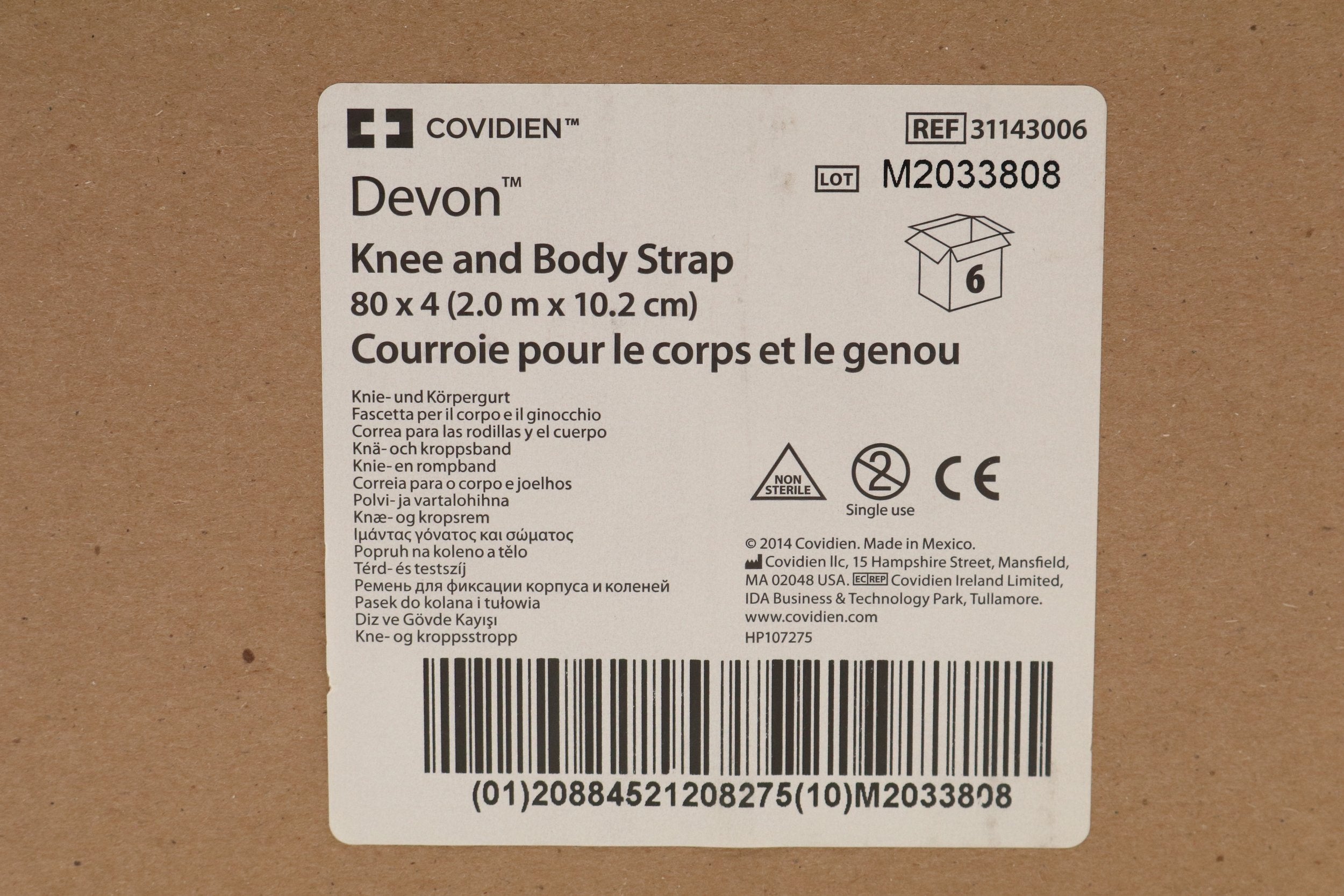 Covidien | 31143006 | NO DATE | BOX OF 6 | Devon Knee and Body Strap 80x4"