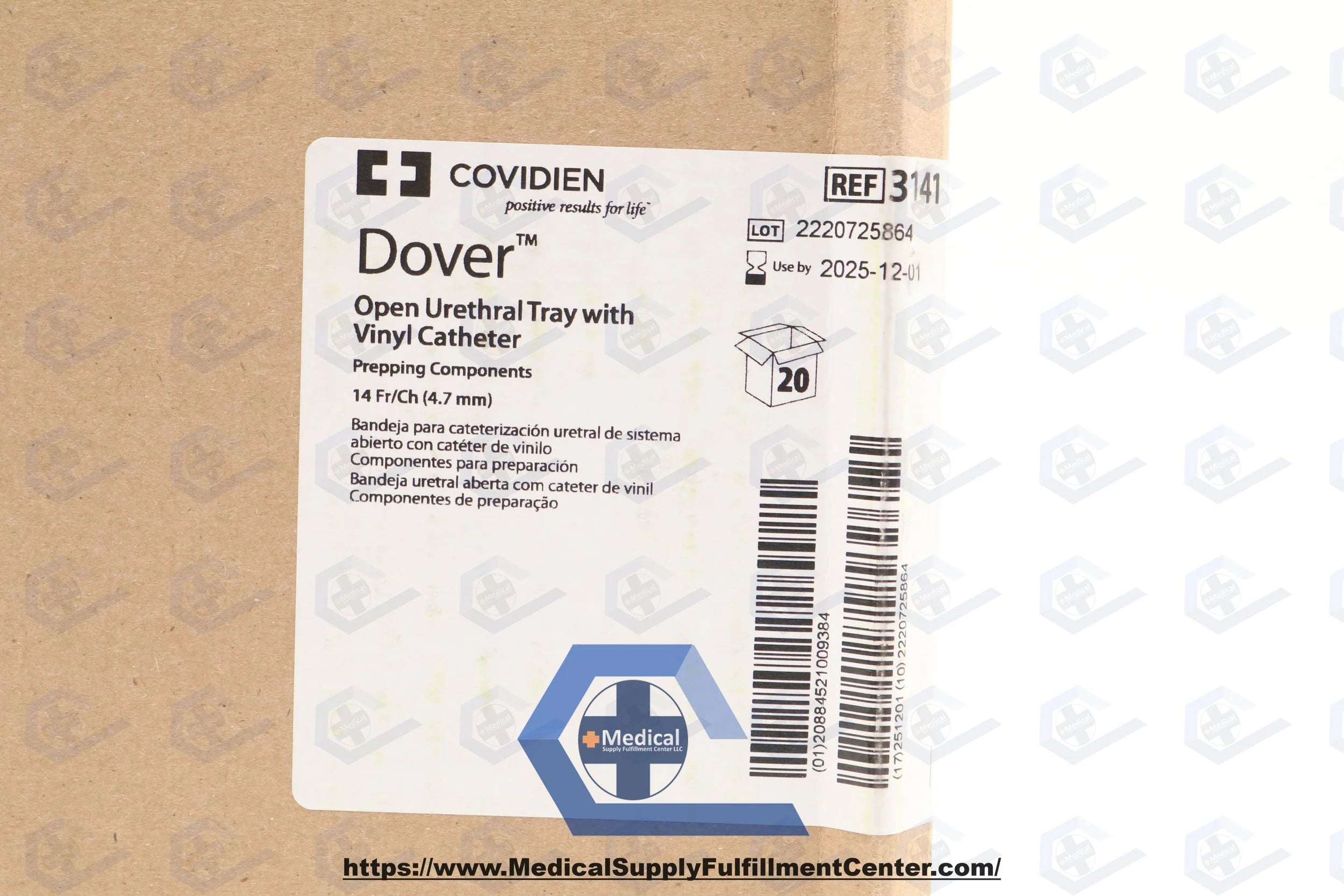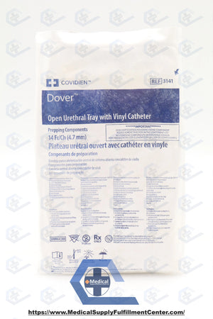 Covidien | 3141 | SHORT DATE | CASE OF 20 | Dover Open Intermittent Tray with PVC Catheter, Vinyl, Latex-Free, PVP Solution, 14 Fr