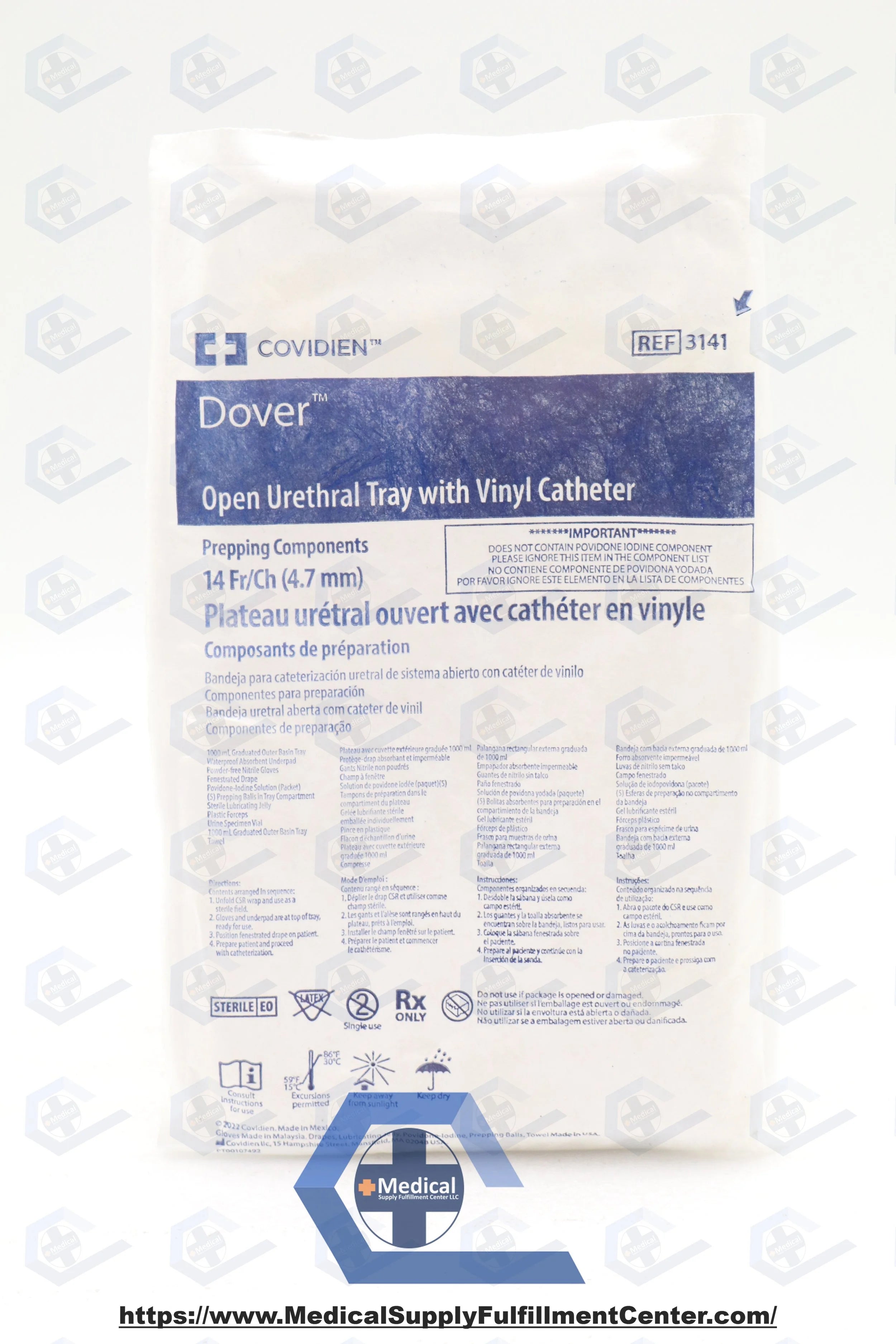 Covidien | 3141 | Dover Open Intermittent Tray with PVC Catheter, Vinyl, Latex-Free, PVP Solution, 14 Fr