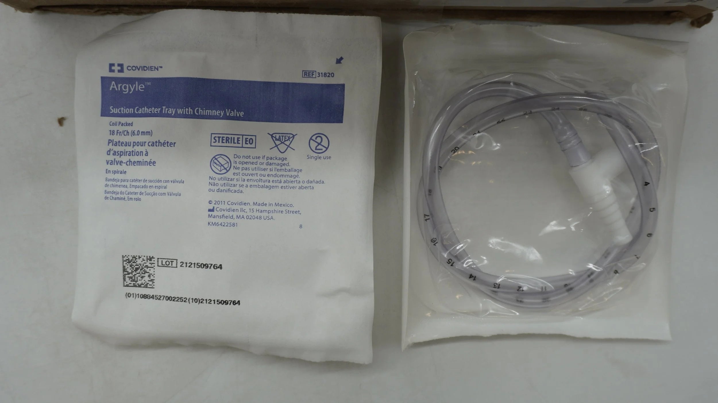 COVIDIEN 31820 Case of 50 Argyle 18 Fr/Ch Suction Catheter Tray with Chimney Valve