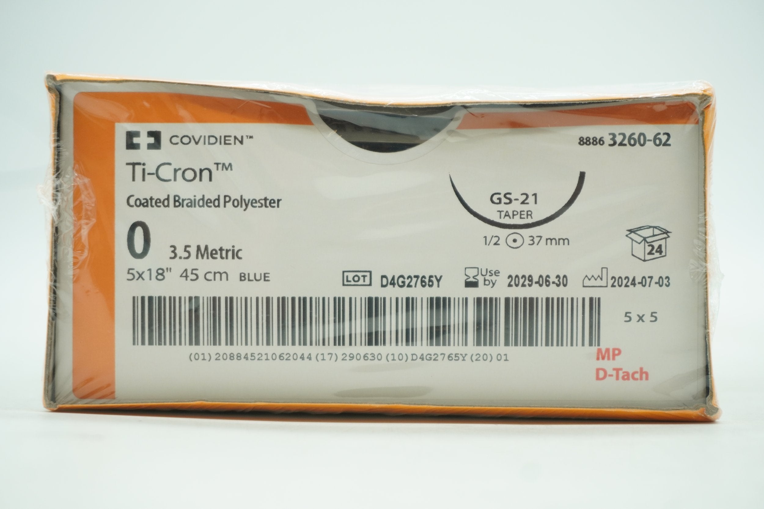 COVIDIEN | 3260-62 | BOX OF 24 | Ti-Cron Coated Braided Polyester 0 3.5 Metric 5x18" 45cm BLUE