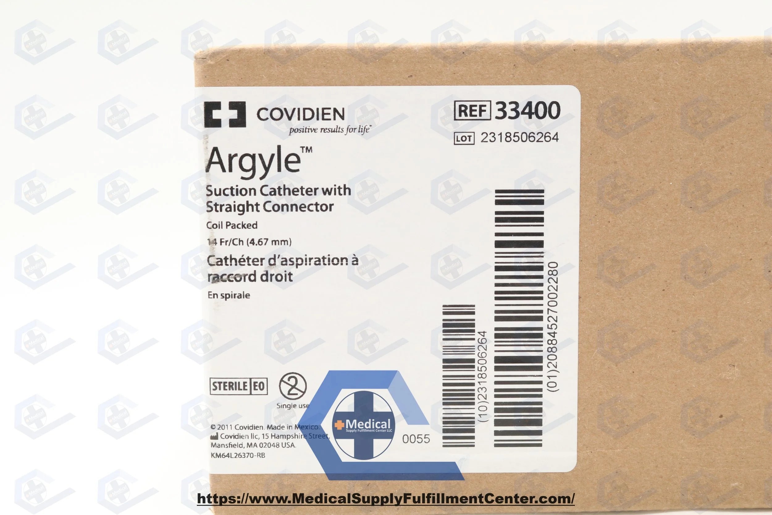 Covidien | 33400 | Argyle Single Suction Catheter, Coil Packed with Straight ConnectorWhistle Tip, 14 Fr