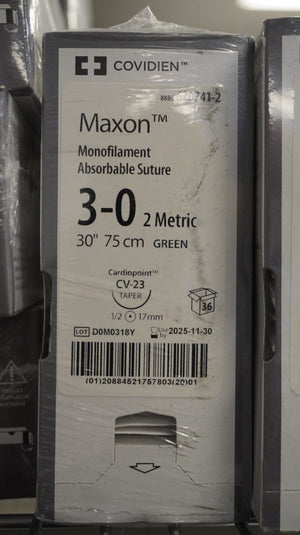 COVIDIEN 620741-2 PACK of 36/pc Maxon Monofilament Absorbable Suture 3-0 2 Metric 30" 75cm GREEN