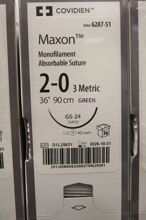 Covidien | 6287-51 | Monofilament Absorbable Suture 2-0 3 Metric 36" 90cm GREEN