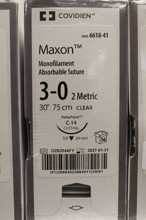 COVIDIEN | 6618-41 | INDATE | BOX OF 36 | Suture, Size 3-0, 75 cm Length, Clear, Polyglyconate, Monofilament, 3/8 Circle, 24 mm Needle Length, C-14 Needle
