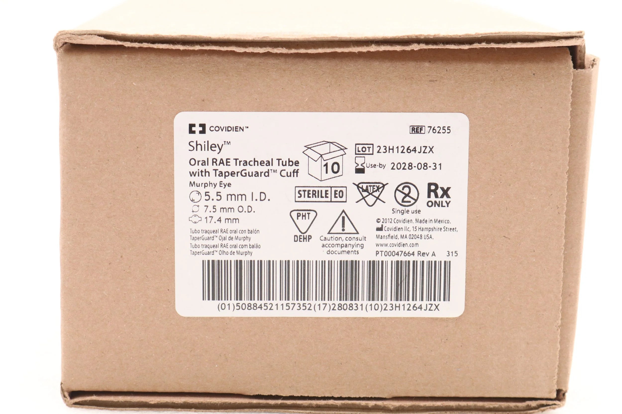 COVIDIEN | 76255 | IN-DATE | BOX OF 10 | Shiley Oral RAE Endotracheal Tube w/TaperGuard Cuff 5.5mm