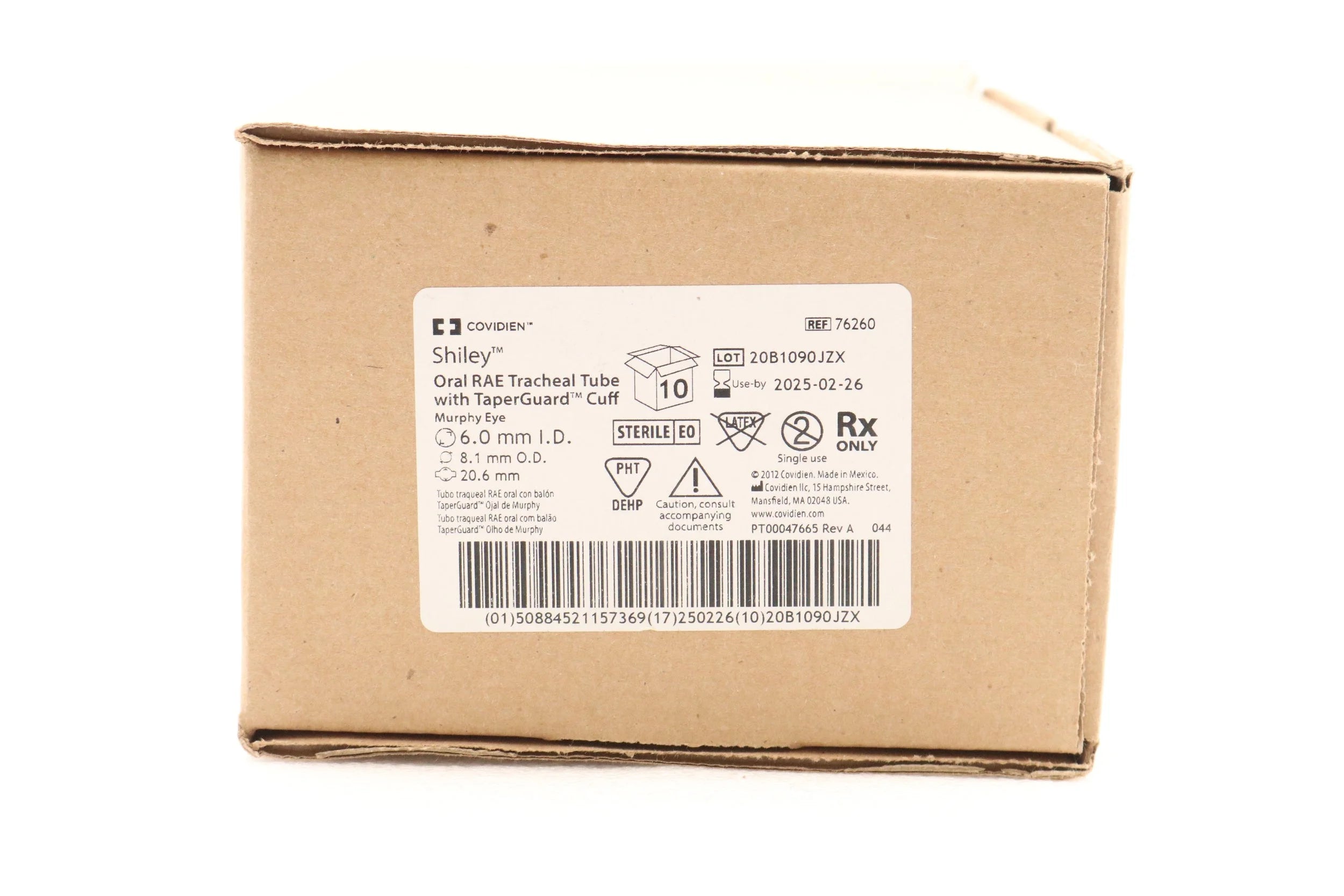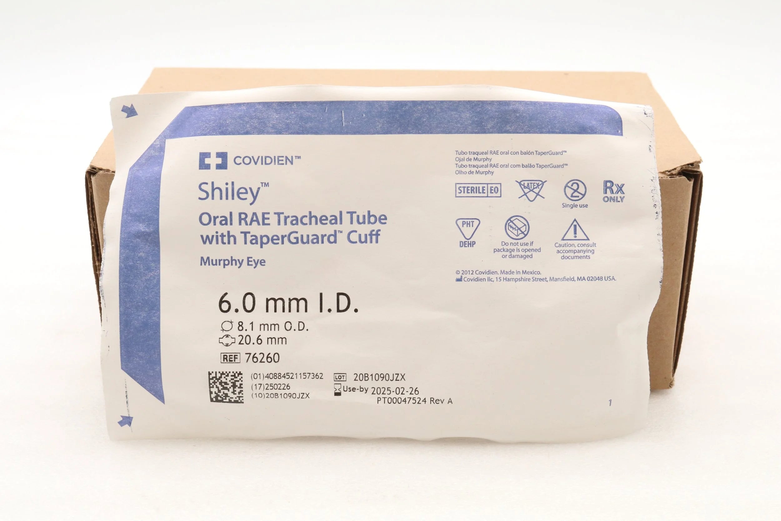 Covidien | 76260 | IN-DATE | BOX OF 10 | Shiley Oral RAE Tracheal Tube W/TaperGuard Cuff 6.0mm ID, 8.1mm