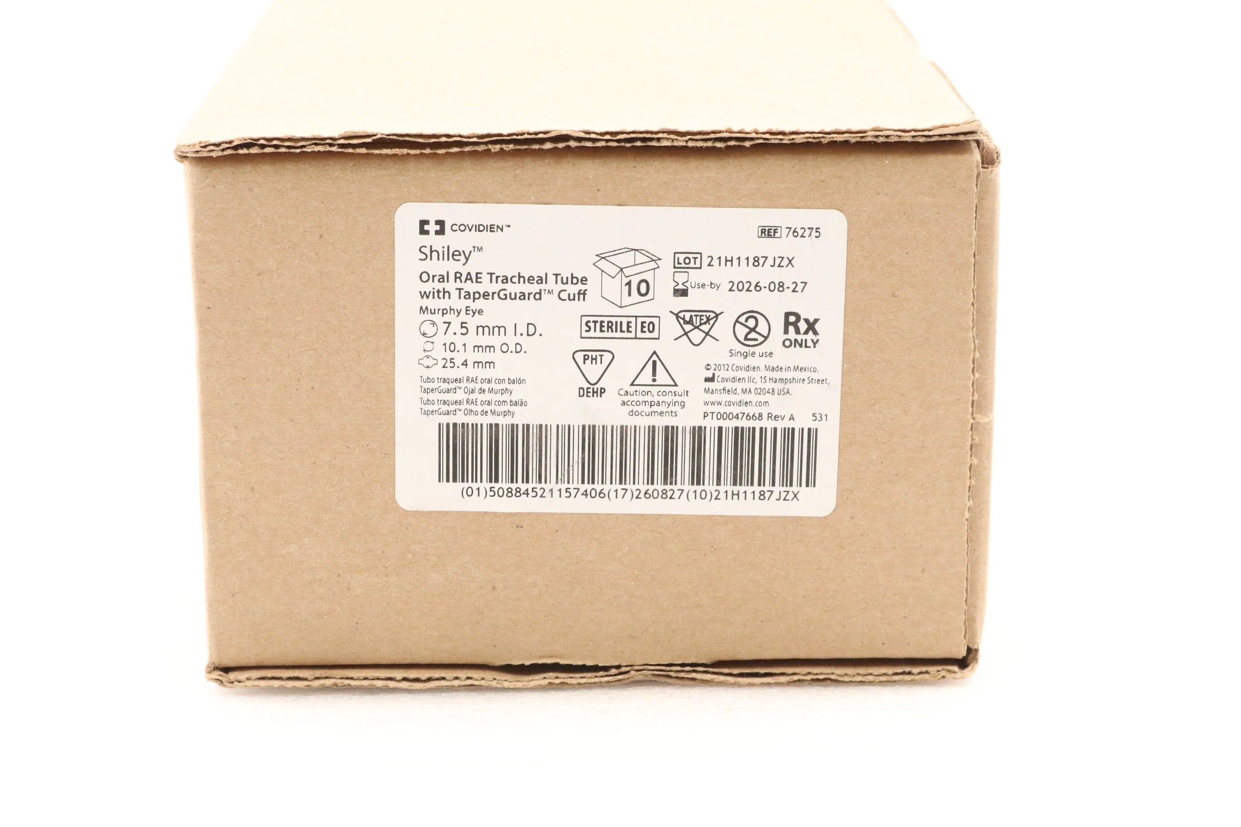 COVIDIEN | 76275 | BOX OF 10 | Shiley Oral RAE Endotracheal Tube w/TaperGuard Cuff 7.5mm
