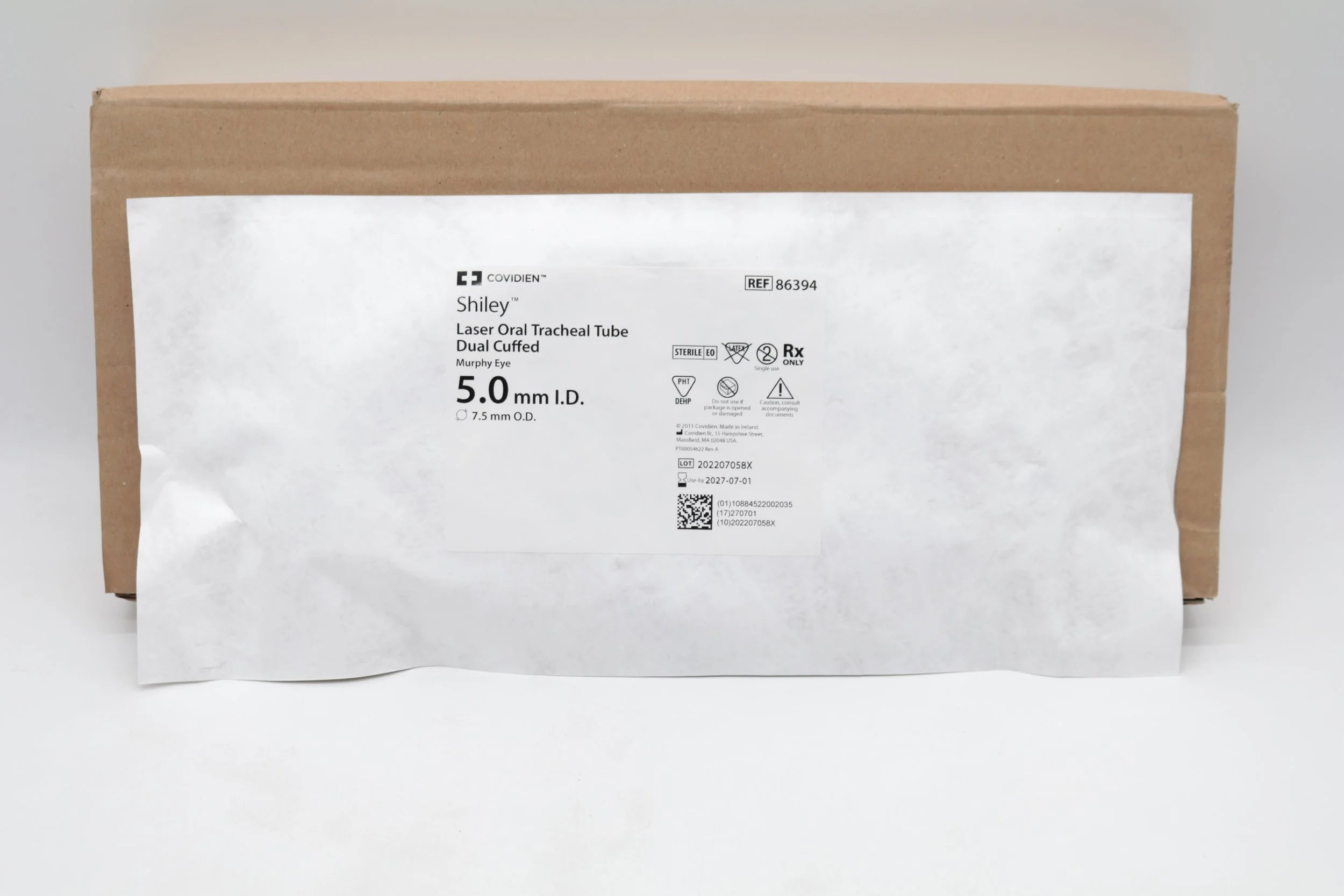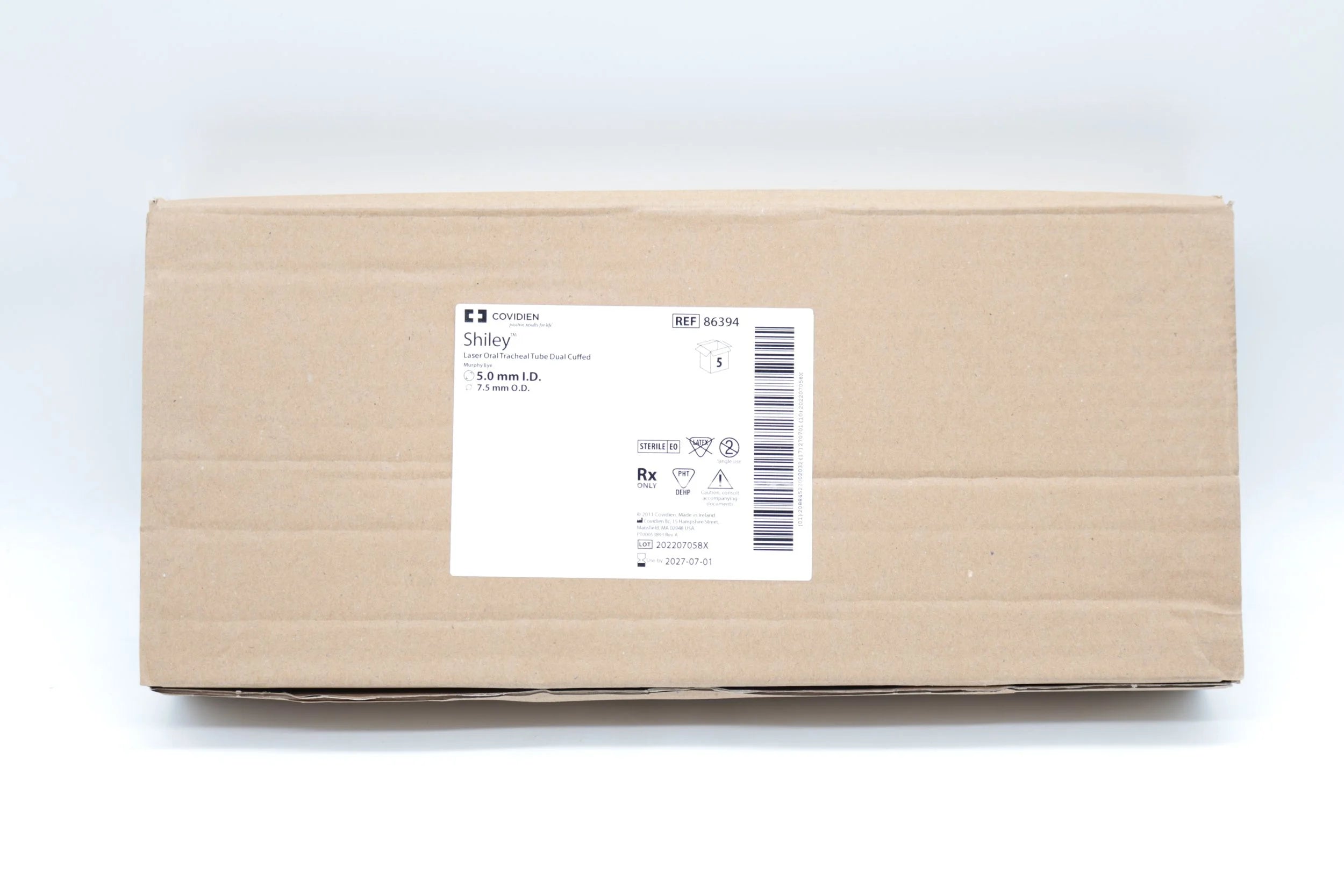 Covidien 86394 Shiley Laser Oral Tracheal Tube Dual Cuffed Murphy Eye 5.0mm I.D. 7.5mm O.D. Box of 5