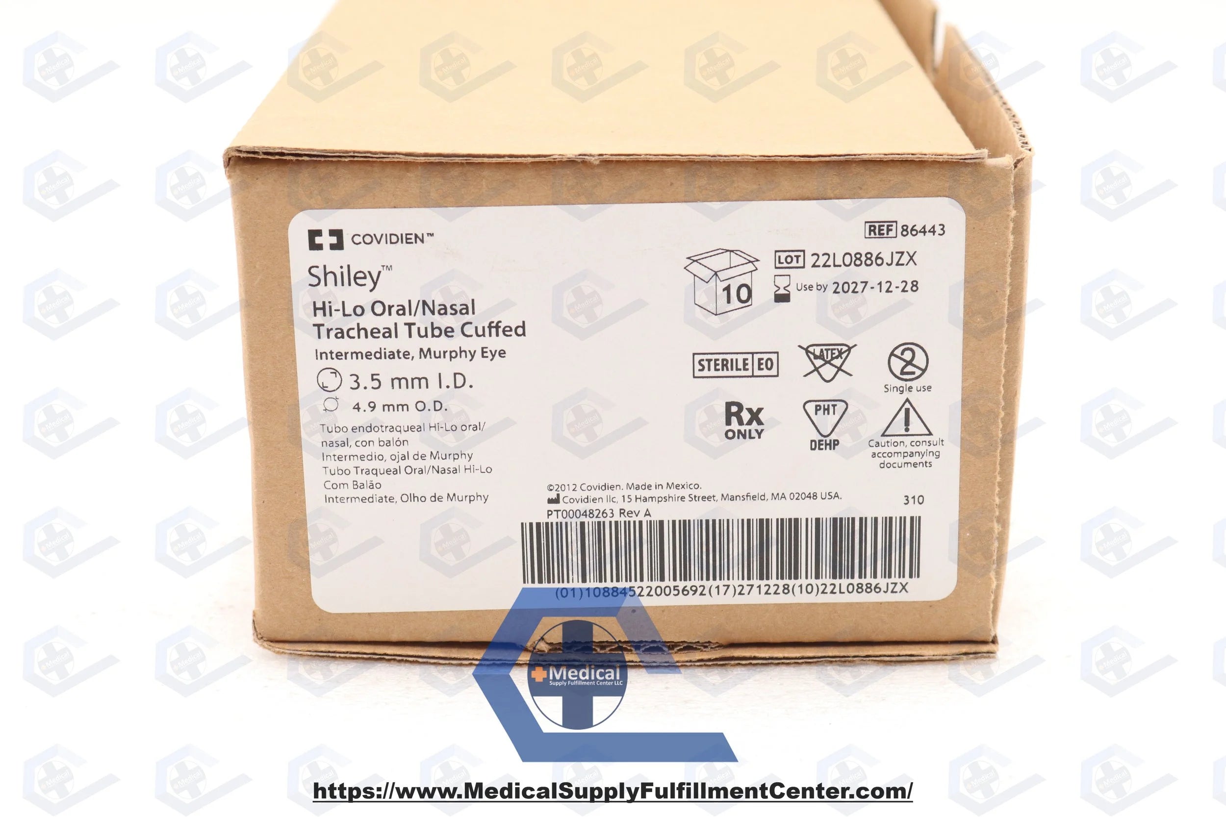 COVIDIEN | 86443 | IN-DATE | BOX OF 10 | Shiley Hi-Lo Oral/Nasal Endotracheal Tube, Cuffed, Intermediate, Murphy Eye 3.5mm