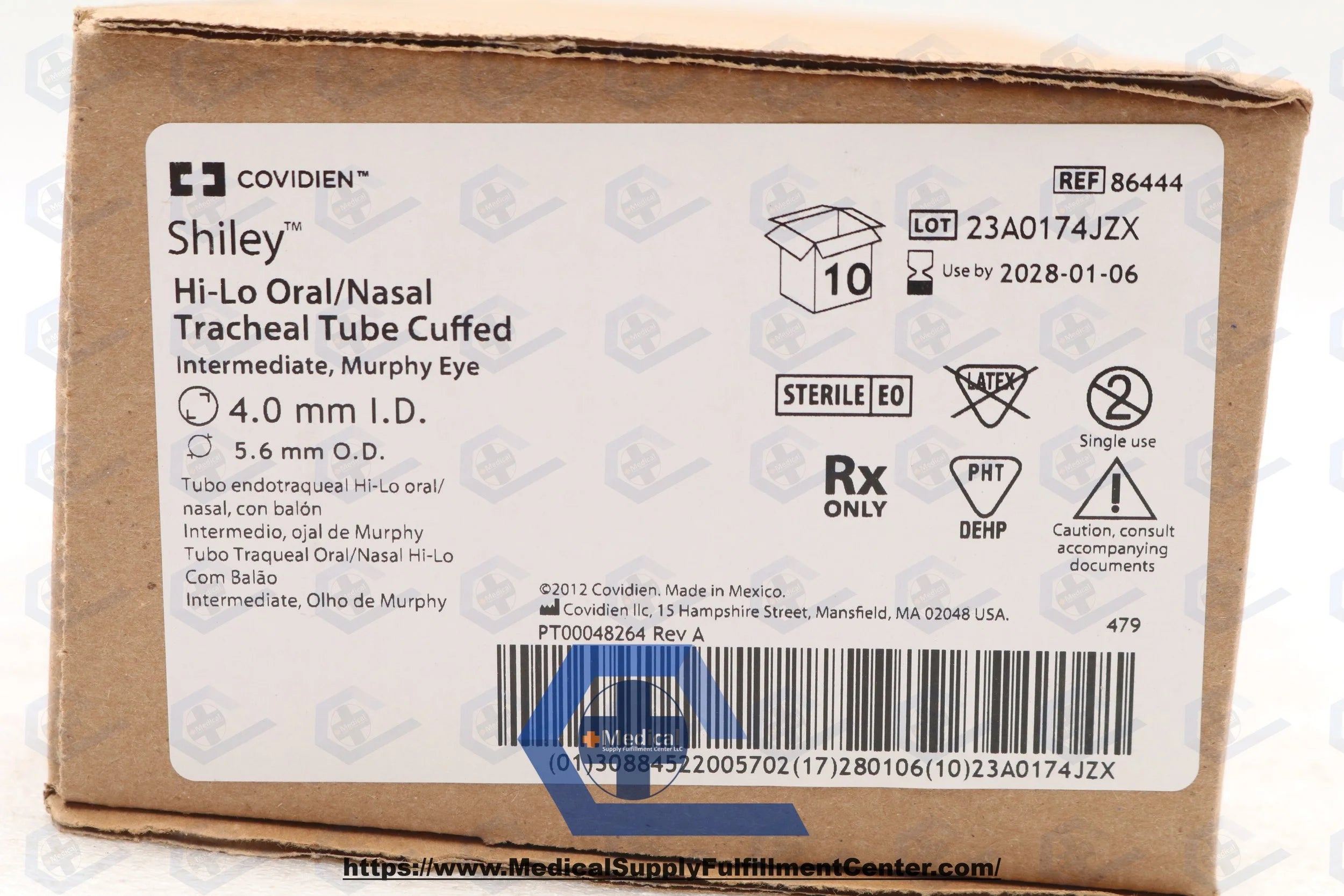 COVIDIEN | 86444 | IN-DATE | BOX OF 10 | Shiley Hi-Lo Oral/Nasal Endotracheal Tube, Cuffed, Intermediate, Murphy Eye 4.0mm