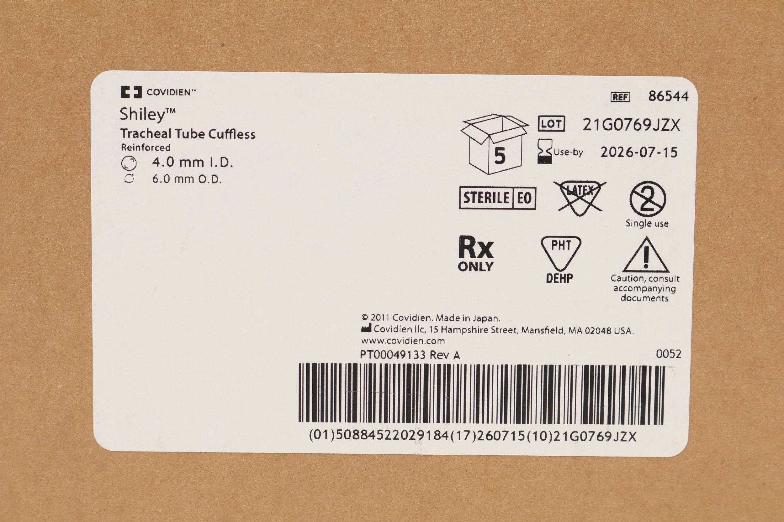 Covidien | 86544 | IN-DATE | BOX OF 5 | TUBE, ENDOTRACH, UNCUFF, MAGILL, 4.0 MM