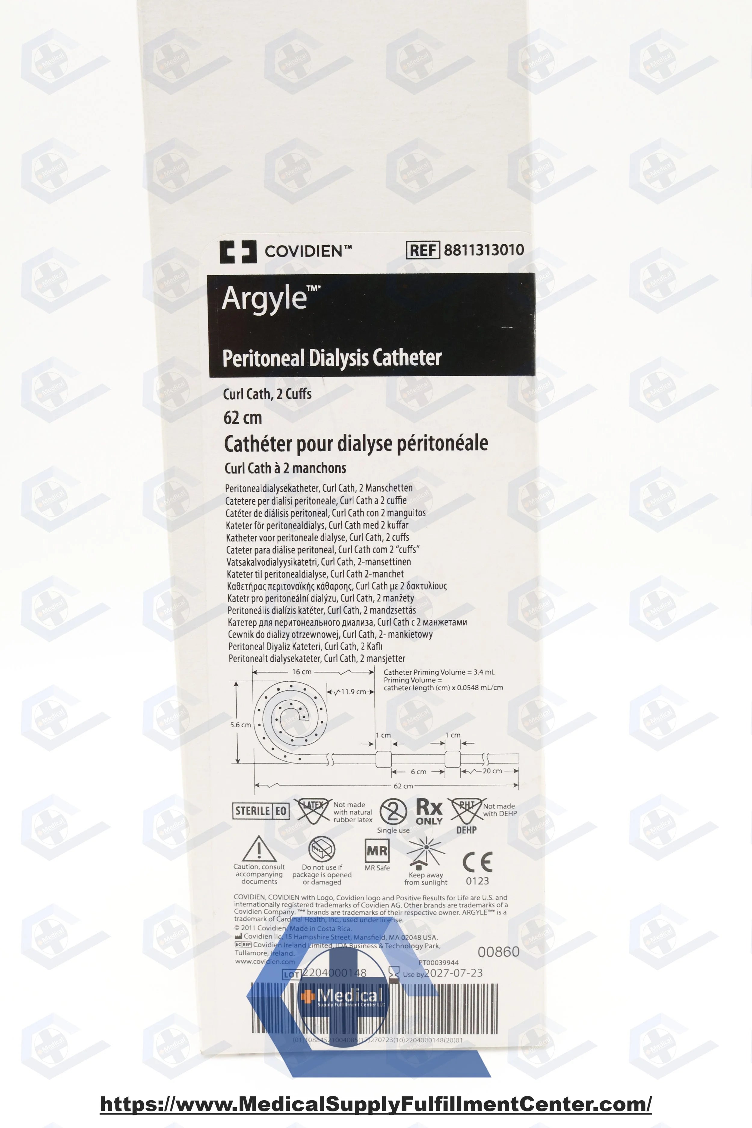 COVIDIEN | 8811313010 | SHORT DATE | EACHES | ARGYLE PERITONEAL DIALYSIS CATHETER CURL CATH, 2 CUFF, 62CM