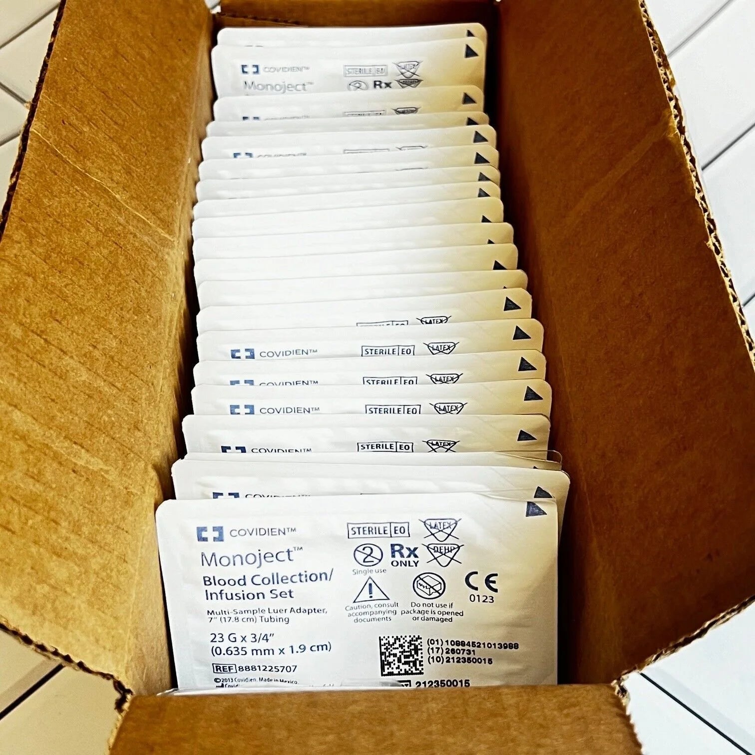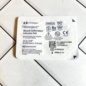 Covidien | 8881225707 | IN-DATE | Box of 50 | Monoject Blood Collection/Infusion Set, Multi-Sample Luer Adapter, 7" (17.8cm) Tubing, 23 G x 3/4" (0.635 mm x 1.9 cm)