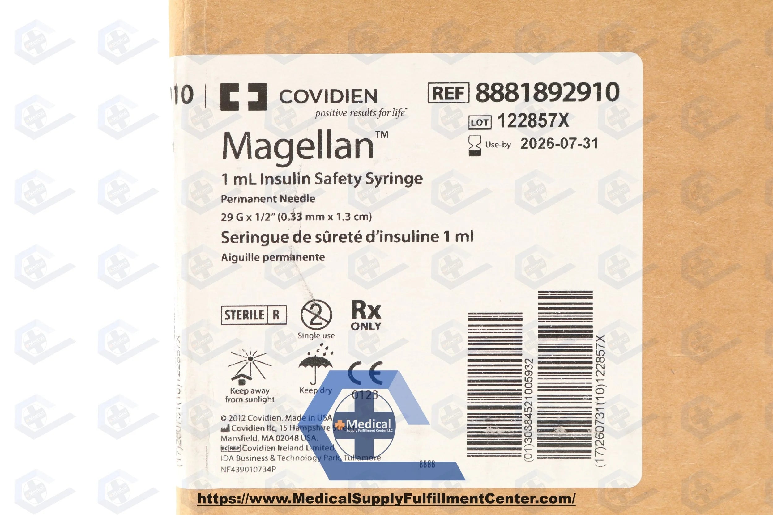 Covidien | 8881892910 | IN-DATE | Box of 500 | Magellan Insulin Safety Syringe with Needle 1CC 29G .5IN