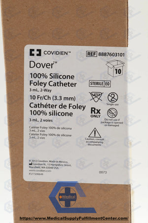 Covidien | 8887603101 | IN-DATE | BOX OF 10 | Dover 100% Silicone Foley Catheter, 3 mL, 2-Way (Pediatric), 10 Fr (3.3 mm)