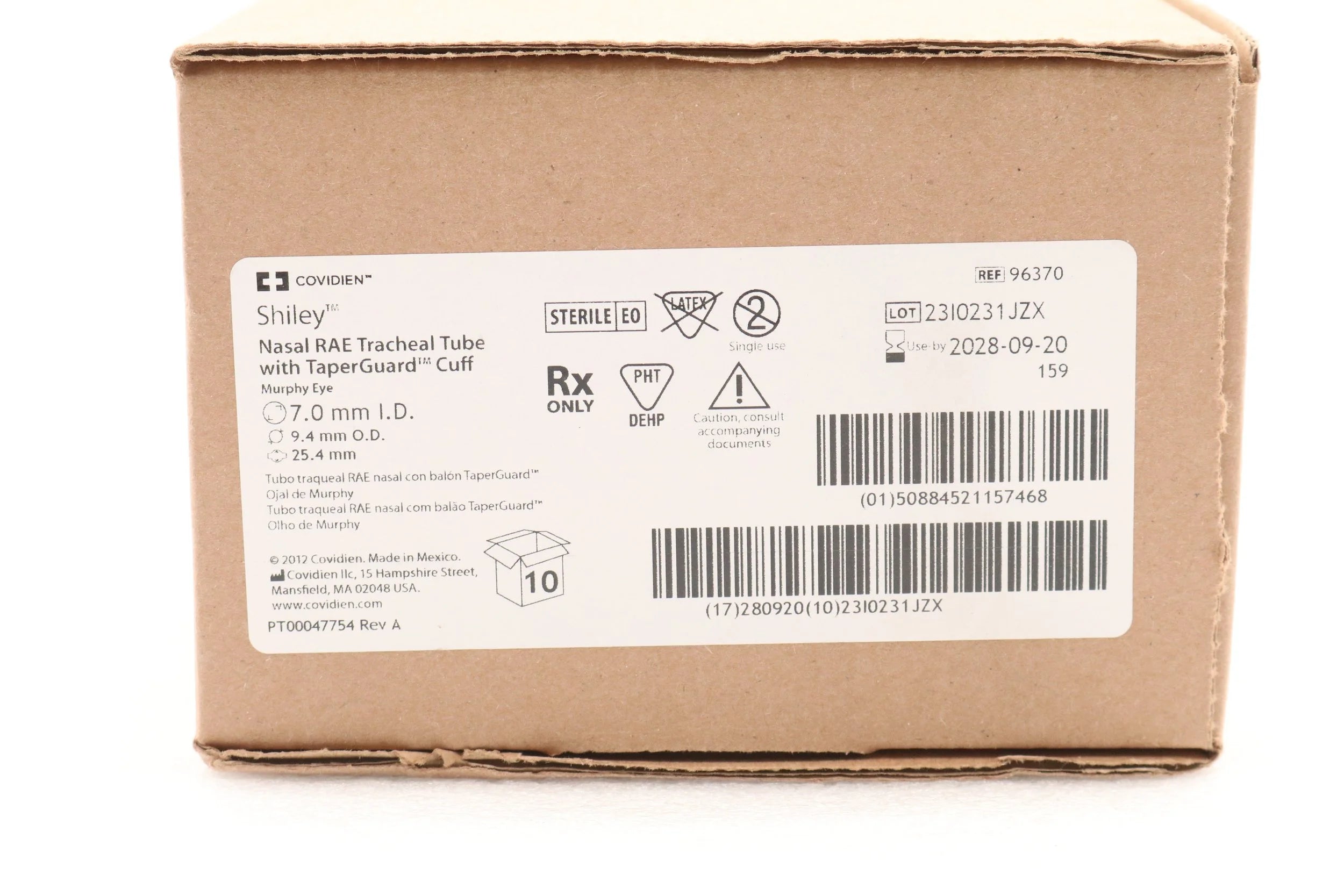 Covidien | 96370 | IN-DATE | BOX OF 10 | Shiley Nasal Rae Tyrachael Tube W Taperguard Cuff 7.0mm