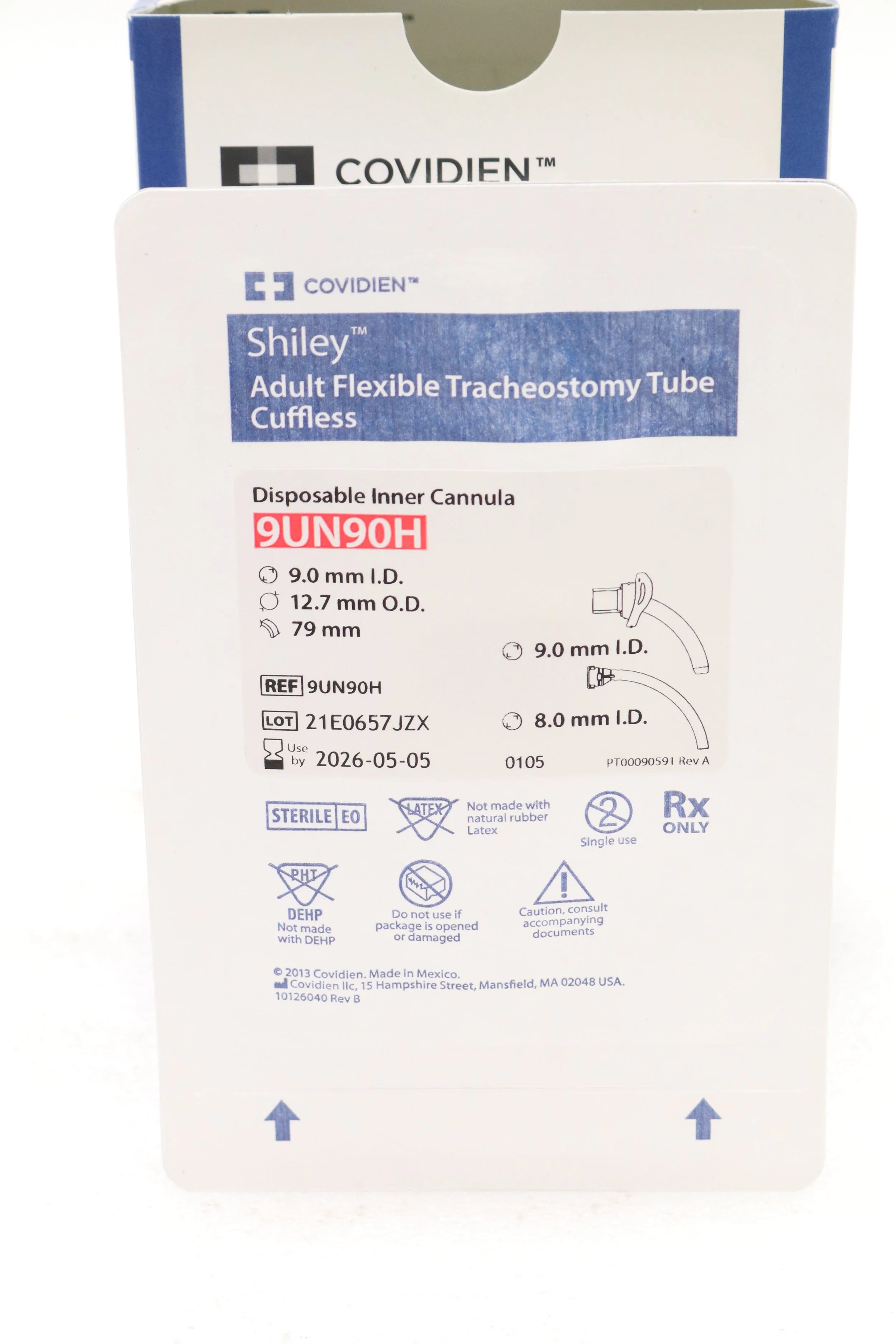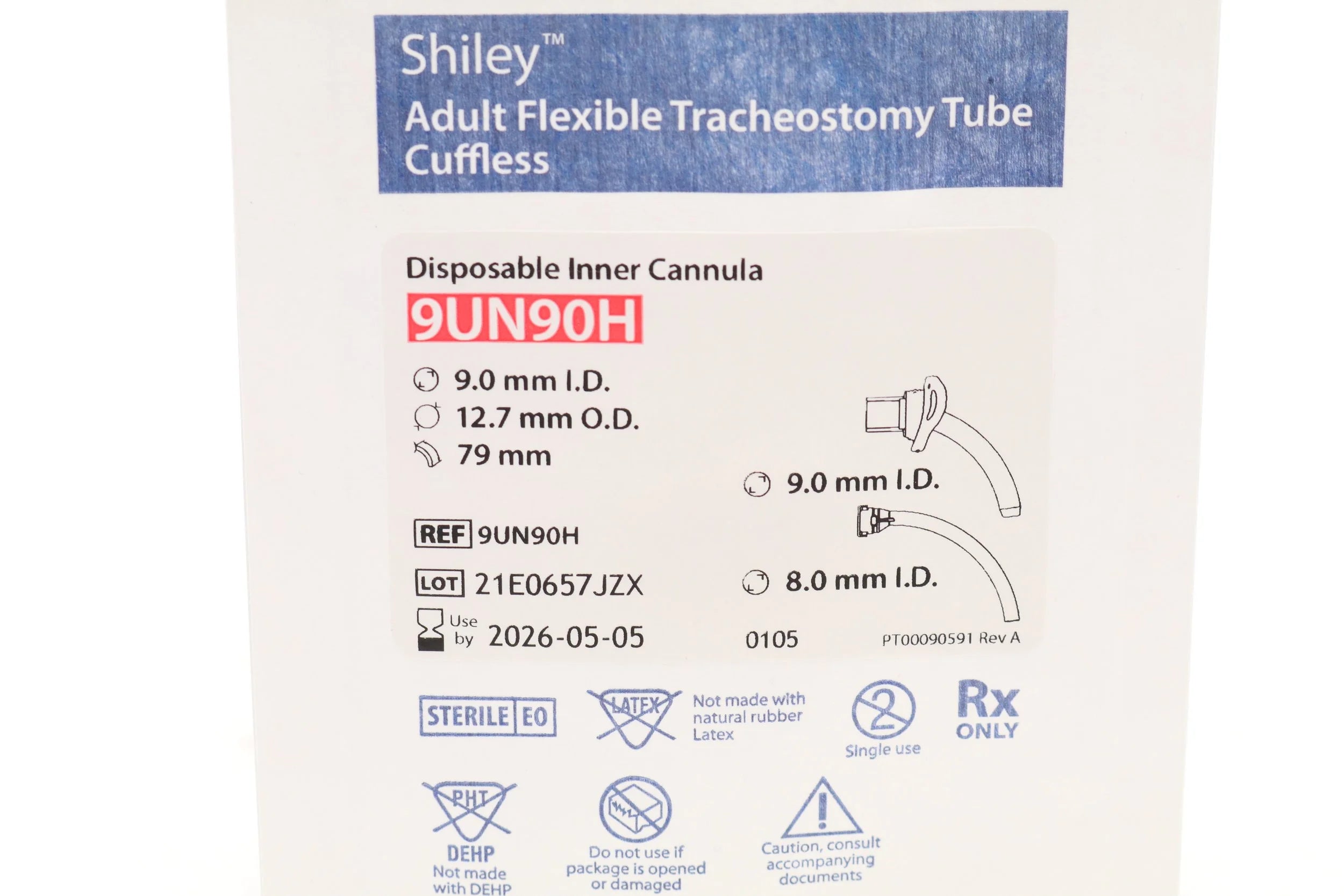 COVIDIEN | 9UN90H | EACHES | Tracheostomy Tube, Size 9, 9 ID x 12.7 mm OD, White, PVC, 8 mm ID Inner Cannula, Cuffless, Flexible
