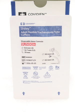 Covidien | 9UN90H | Tracheostomy Tube, Size 9, 9 ID x 12.7 mm OD, White, PVC, 8 mm ID Inner Cannula, Cuffless, Flexible
