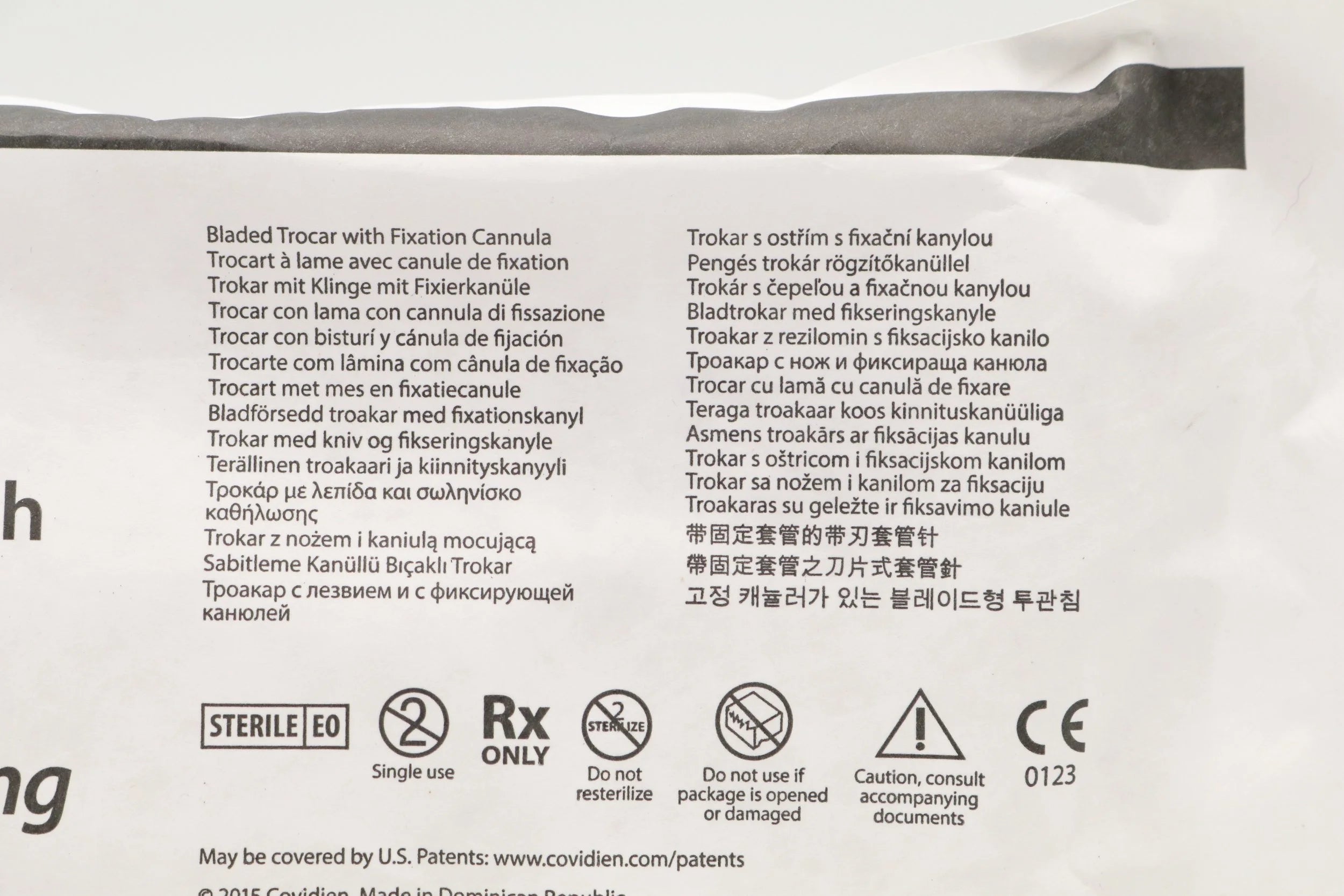COVIDIEN | B12LGF | IN-DATE | LOT OF 6 | VERSAONE BLADED TROCAR WITH FIXATION CANNULA, 12MM LONG