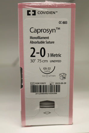 COVIDIEN Caprosyn Monofilament Absorbable Suture 2-0 3 Metric 30" 75cm UNDYED PACK of 36/pc REF CC-883