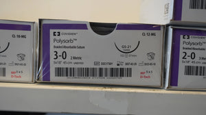 COVIDIEN CL-12-MG PACK of 12/pc Polysorb Braided Absorbable Suture 3-0 2 Metric 5x18" 45cm UNDYED