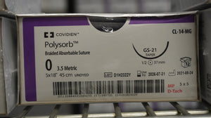 Covidien | CL-14-MG | Polysorb Braided Absorbable Suture 2-0 3 Metric 5x18" 45cm VIOLET