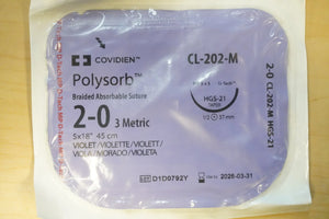 COVIDIEN CL-202-M PACK of 12/pc Polysorb Braided Absorbable Suture 2-0 3 Metric 5x18" 45cm VIOLET