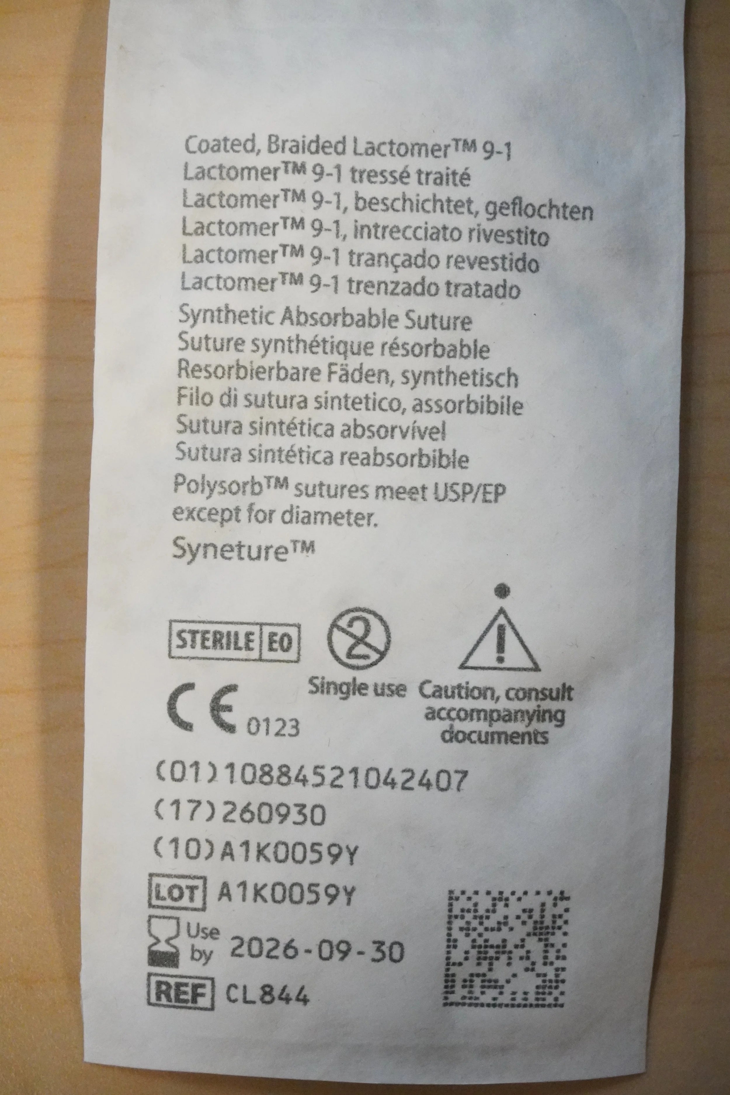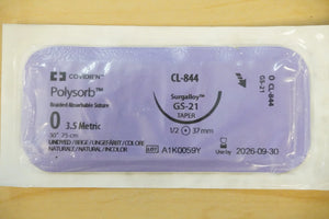 COVIDIEN | CL-844 | EACHES | Polysorb Braided Absorbable Suture 0 3.5 Metric 30" 75cm UNDYED