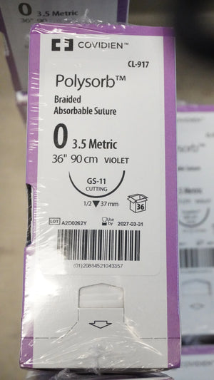 COVIDIEN | CL-917 | PACK of 36/pc | Polysorb Braided Absorbable Suture 0 3.5 Metric 36" 90cm VIOLET