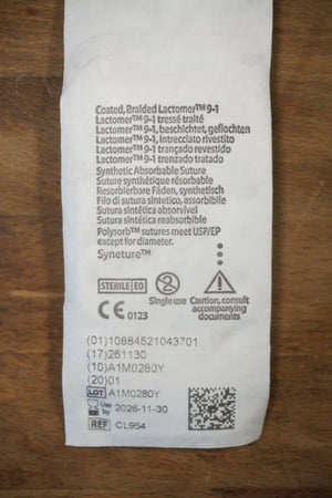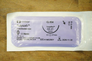 Covidien | CL-954 | Polysorb Braided Absorbable Suture 0 3.5 Metric 36" 90cm UNDYED