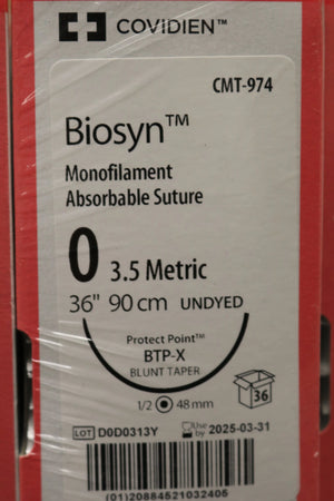 COVIDIEN Biosyn Monofilament Absorbable Suture 0 3.5 Metric 36" 90cm UNDYED PACK of 36/pc