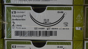 COVIDIEN | CN-490 | IN-DATE | Box of 24 | Suture, Size 2, 75 cm Length, Black, Nylon, Monofilament, 3/8 Circle, 77 mm Needle Length