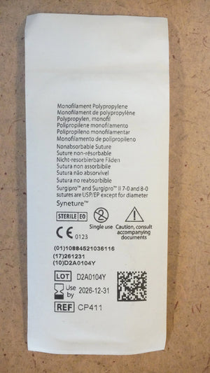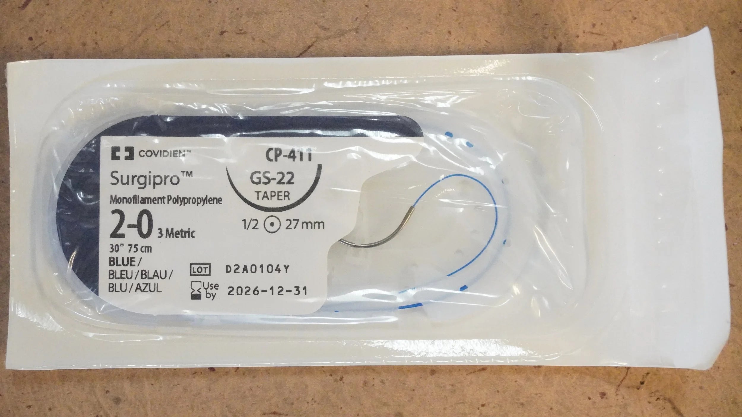 COVIDIEN CP-411 EACHES Surgipro Monofilament Polypropylene 2-0 3 Metric 30" 75cm UNDYED