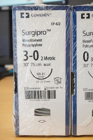 COVIDIEN | CP-422 | PACK of 36/pc | Surgipro Monofilament Polypropylene 3-0 2 Metric 30" 5cm BLUE