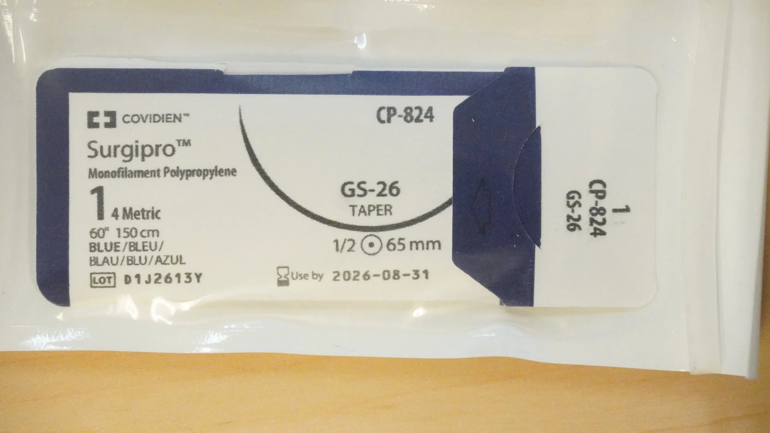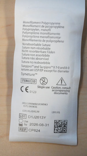 COVIDIEN CP-824 PACK of 24/pc Surgipro Monofilament Polypropylene 1 4 Metric 60" 150cm BLUE