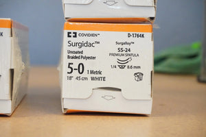 COVIDIEN | D-1764K | PACK of 12/pc | Surgidac Uncoated Braided Polyester 5-0 1 Metric 18" 45cm WHITE