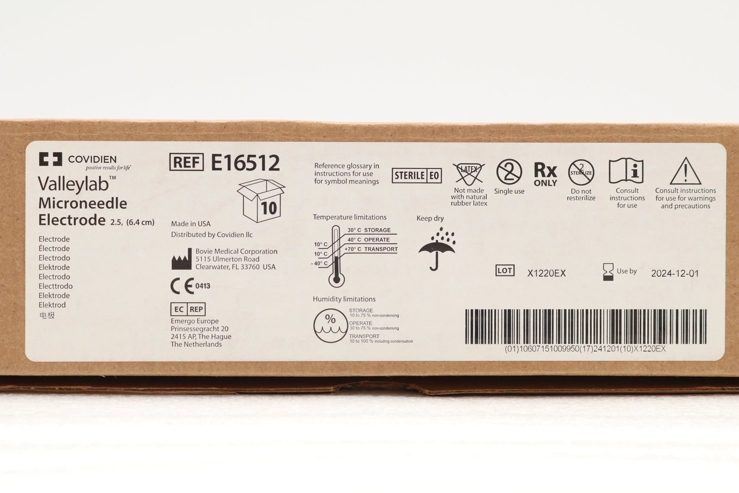 COVIDIEN | E16512 | SHORT DATE | BOX OF 10 | Straight Micro-Needle Electrode, 2 cm Size, Tungsten Wire, Single-Use, Sterile, For Use with Valleylab Electrosurgery System