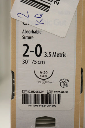 COVIDIEN Chronic Gut Absorbable Suture 2-0 3.5 Metric 30" 75cm PACK of 36/pc