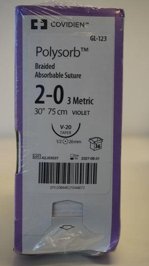 Covidien | GL-123 | Polysorb Braided Absorbable Suture 2-0 3 Metric 30" 75cm VIOLET
