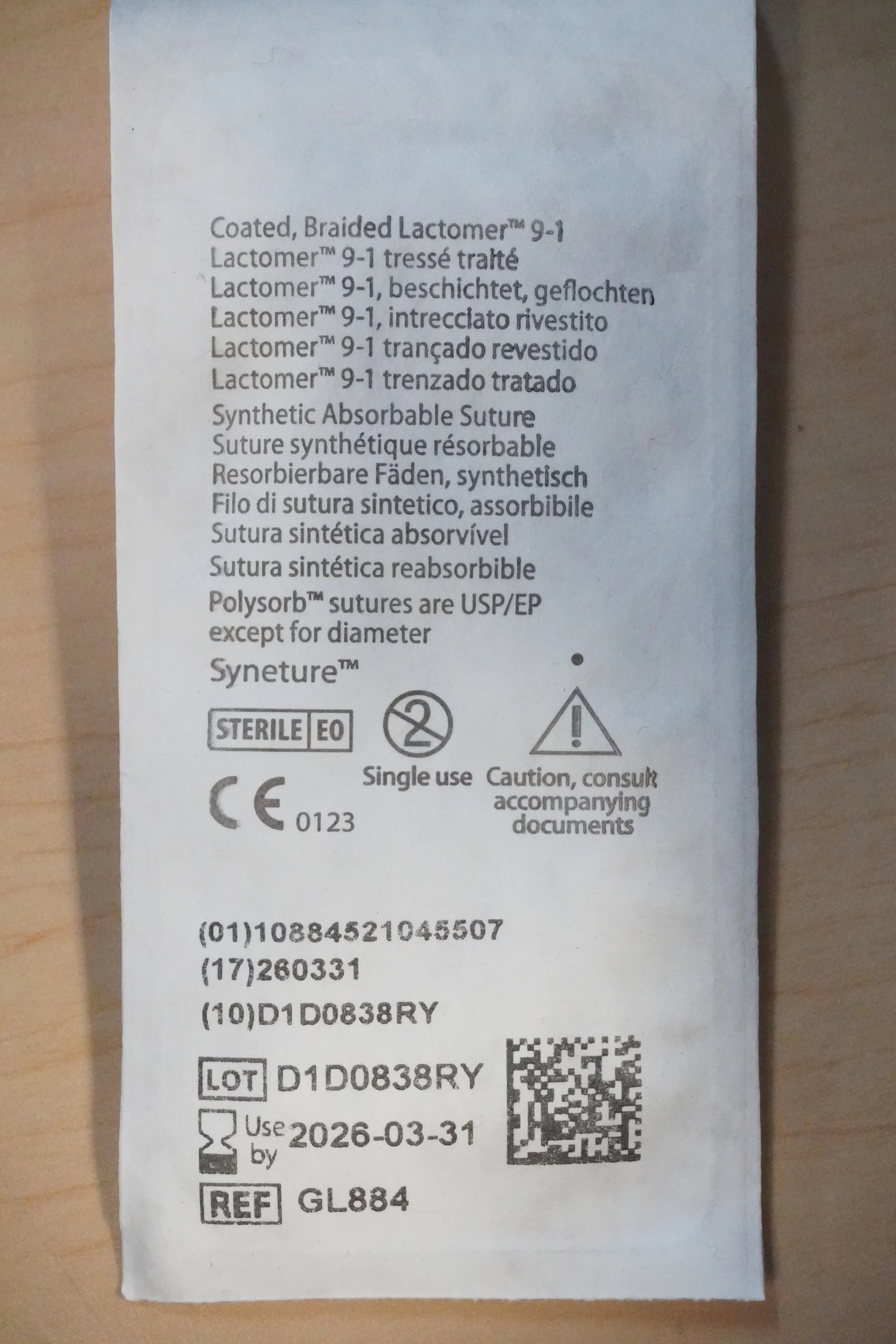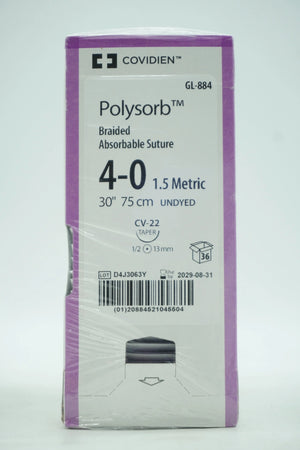 Covidien | GL-884 | Polysorb Braided Absorbable Suture 4-0 1.5 Metric 30" 75cm UNDYED