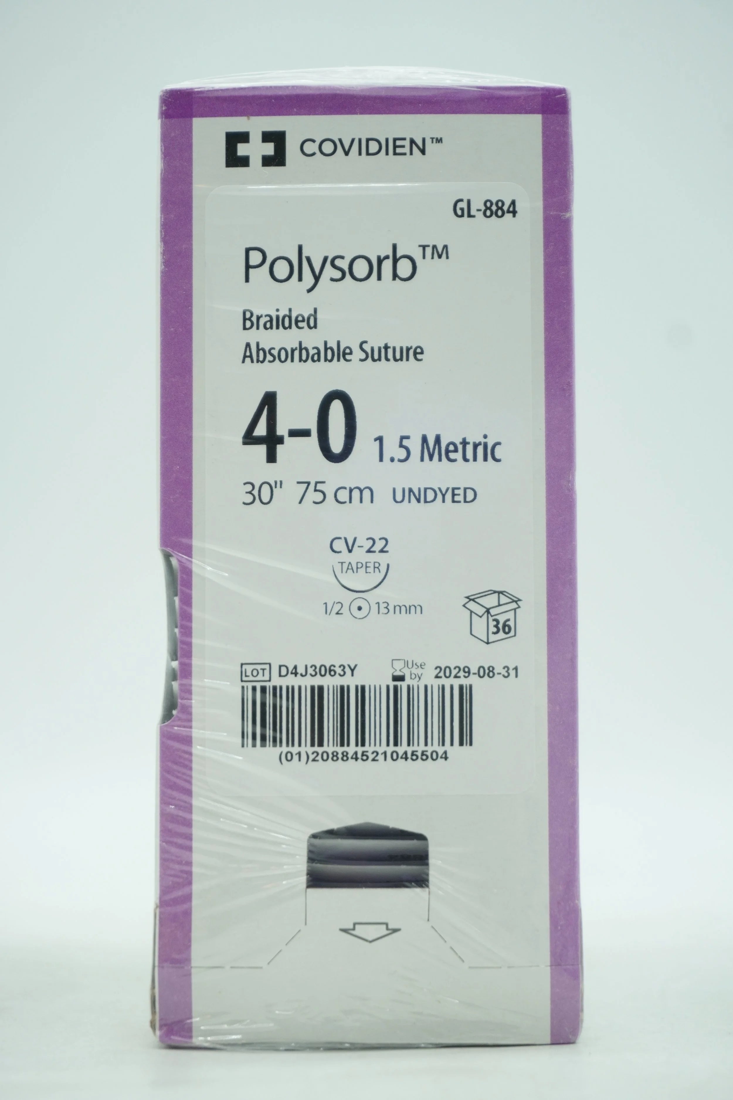 COVIDIEN | GL-884 | INDATE | BOX OF 36 | Polysorb Braided Absorbable Suture 4-0 1.5 Metric 30" 75cm UNDYED