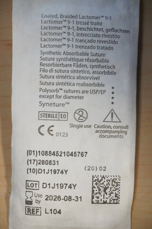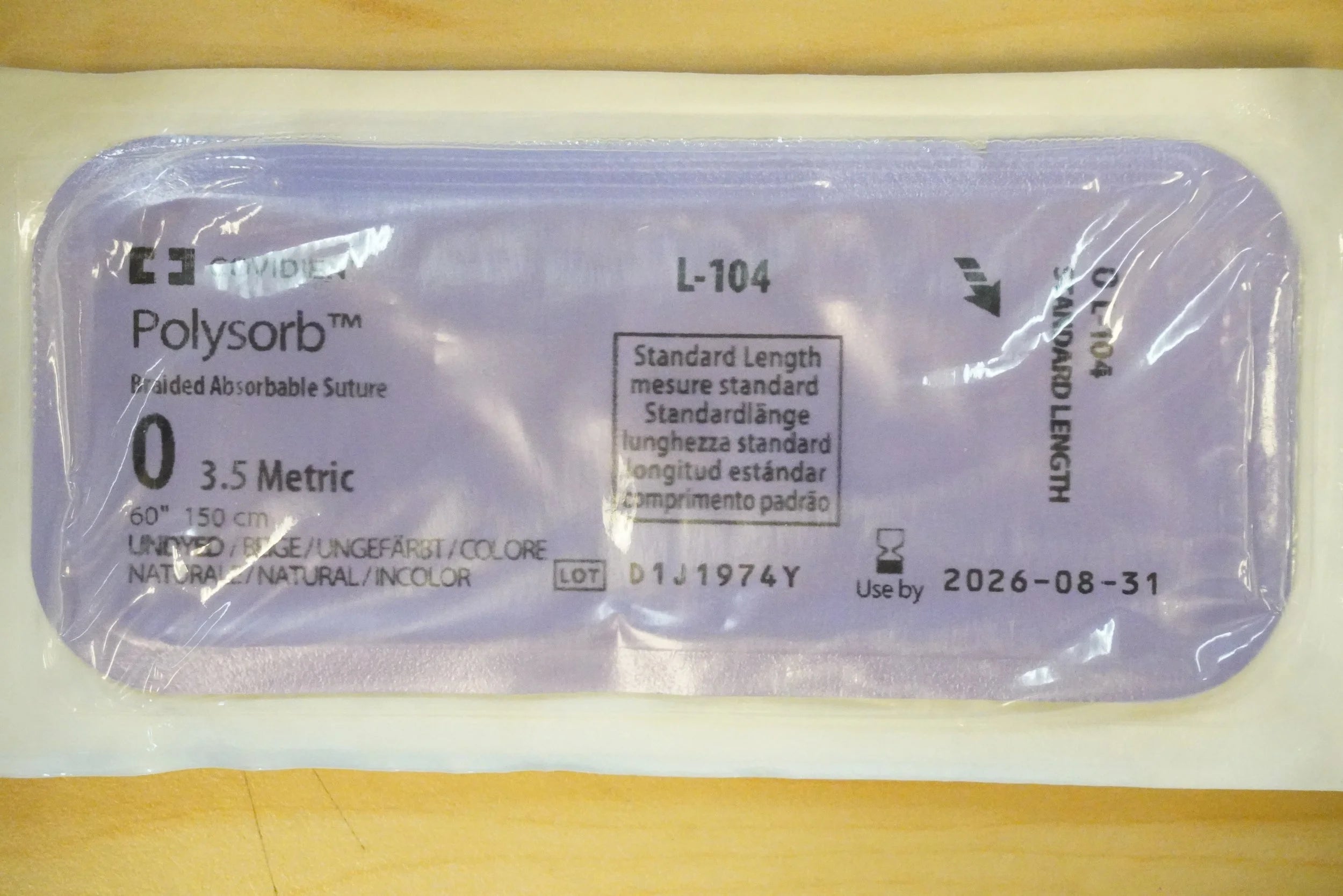 COVIDIEN L-104 PACK of 36/pc Polysorb Braided Absorbable Suture 0 3.5 Metric 60" 150cm UNDYED